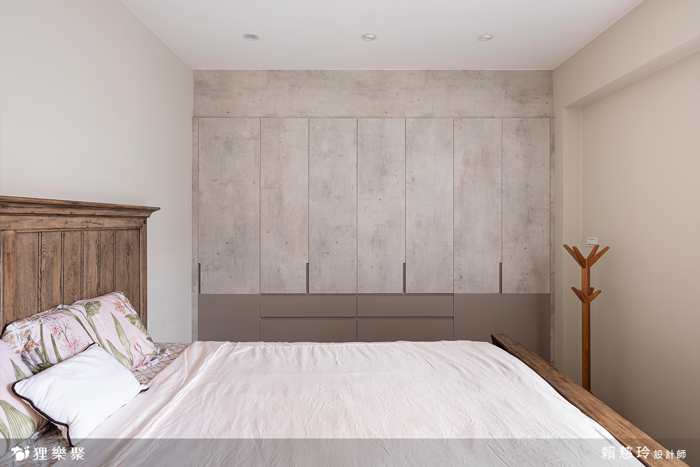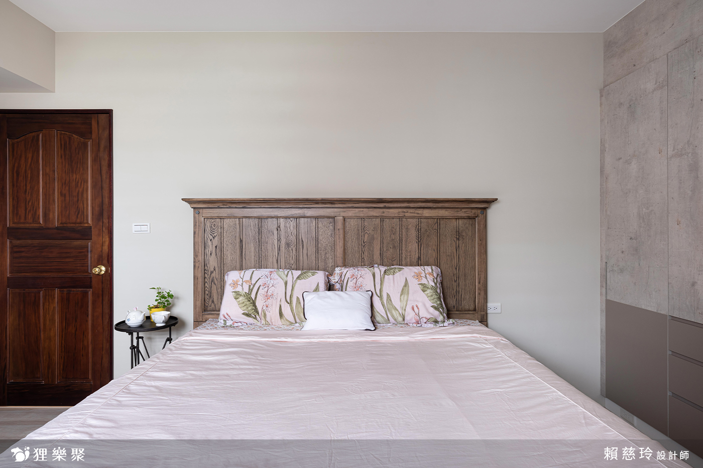 美式風格的高床板使得臥室更顯大氣,睡起來有種更加安穩的感覺。衣櫃使用和餐廳櫥櫃一樣的斑駁感灰色板材,讓整個家在豐富的元素中保有相當的一致性。水晶燈、碎花窗簾、擺飾畫框在美式風格中具有畫龍點睛的效果,彷彿置身於美劇中的場景一般,溫馨和樂的氣氛展露無遺。