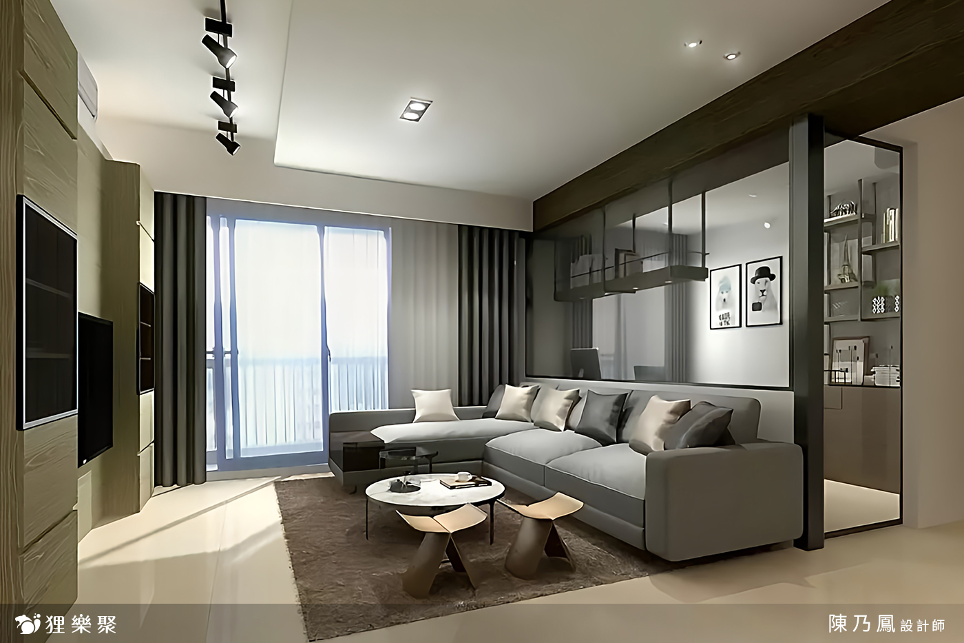 ▲ 沙發後方用半牆玻璃,做通透感書房設計
