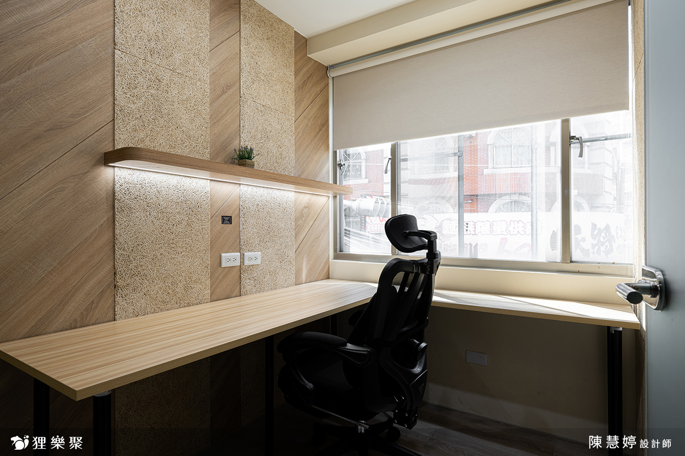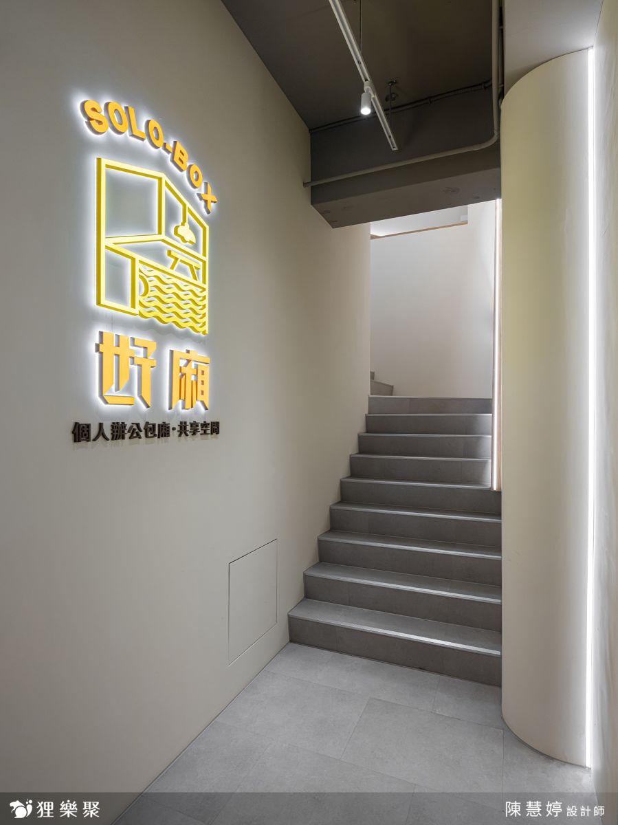 獨立辦公室設計以木元素設計為核心,牆面以淺色木紋板覆蓋,搭配簡潔的線條勾勒出整體質感,展現自然、溫馨且專業的工作環境。襯上帶灰調的木地板、淺木色桌面,並於牆面規劃足量插座,滿足辦公與各類電子用品需求。獨立辦公室的隔音有別於一般隔間,設計師使用了雙層隔間牆面加上吸音棉材質加強整體隔音,同時將獨立辦公室做了不同形式的分割,讓使用者即使在共享空間中依然能體驗到不同的分割造型帶來的舒適氛圍。