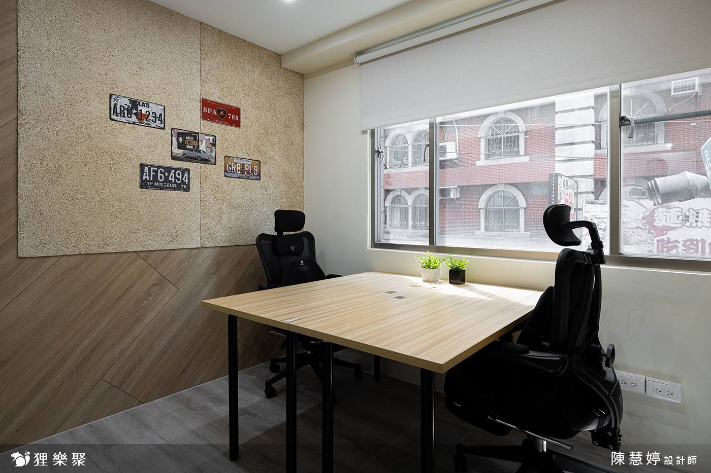 有別於一般制式的辦公室設計,業主希望為來此工作的人打造舒適且溫暖的共享空間,讓人們猶如像在咖啡廳一樣愜意的自在辦公。因此設計師以淺色木紋色為整體設計基調,利用黑鏡、金屬、長虹玻璃、造型壁燈等異材質結合,為公共空間打造有趣的搭配。同時以帶有鋼刷紋路的深咖啡色中和整體色調的協調性,讓空間充滿現代感,避免過於浮誇。隔音上更是有別於一般空間,設計師特別使用了雙層隔間牆面加上吸音材質加強隔音,避免工作時受到外界干擾,以木質調與異材質結合,創造出業主希望的愜意溫暖共享辦公室空間。