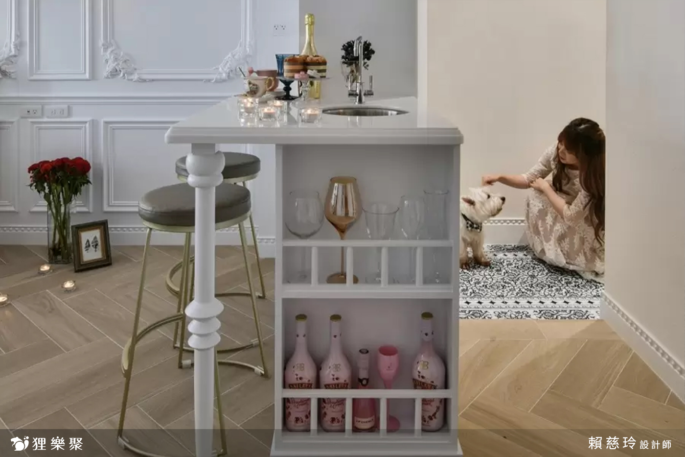 屋主是一個獨居女子,浪漫的她有著明確的取向,喜歡華麗中帶著典雅的法式古典風格。本次的案子是老屋翻修,考量到坪數不大,為了展現古典風裝潢的恢弘氣勢,整個空間不做任何分隔或屏障,以確保能在小坪數發揮出最極限值的豪華感。