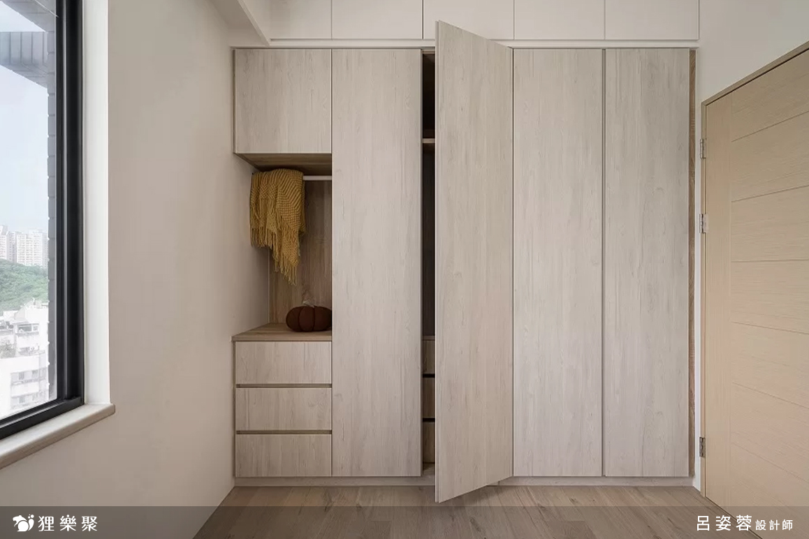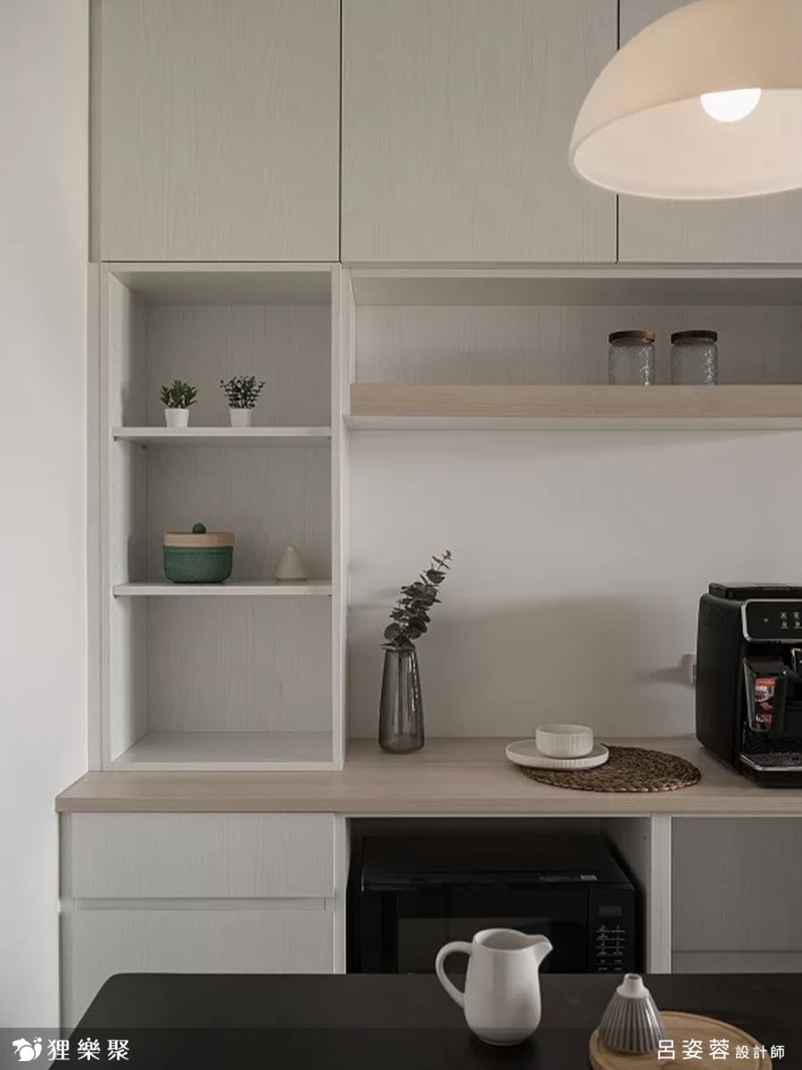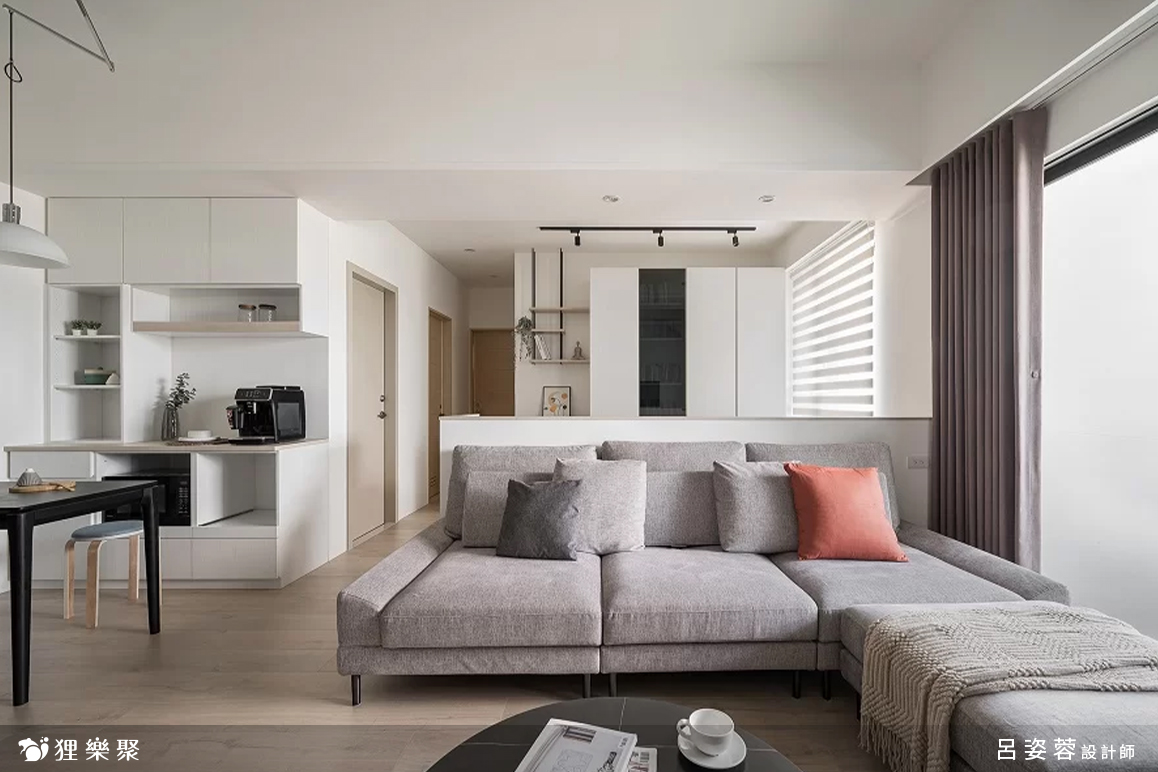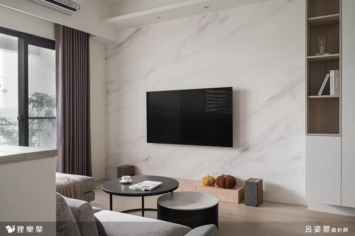 這個奶茶色室內設計案例規劃了客廳、餐廳、書房和主臥,整體線條仍呈現出現代簡約風設計概念,將剛硬的黑色、冷冽的灰色替換為溫暖的淺木紋,帶來簡約又清新的氛圍,電視牆選用白色的仿大理石板材,減少了和白色系櫃子之間的分界感,更減輕視覺的負擔,且在櫃體設計上保留了適當的留白,讓空間擁有呼吸的空間,是一個相當舒適的奶茶色裝潢。延伸閱讀:<< 裝潢該找統包或室內設計師?先看看差異再選擇! >>