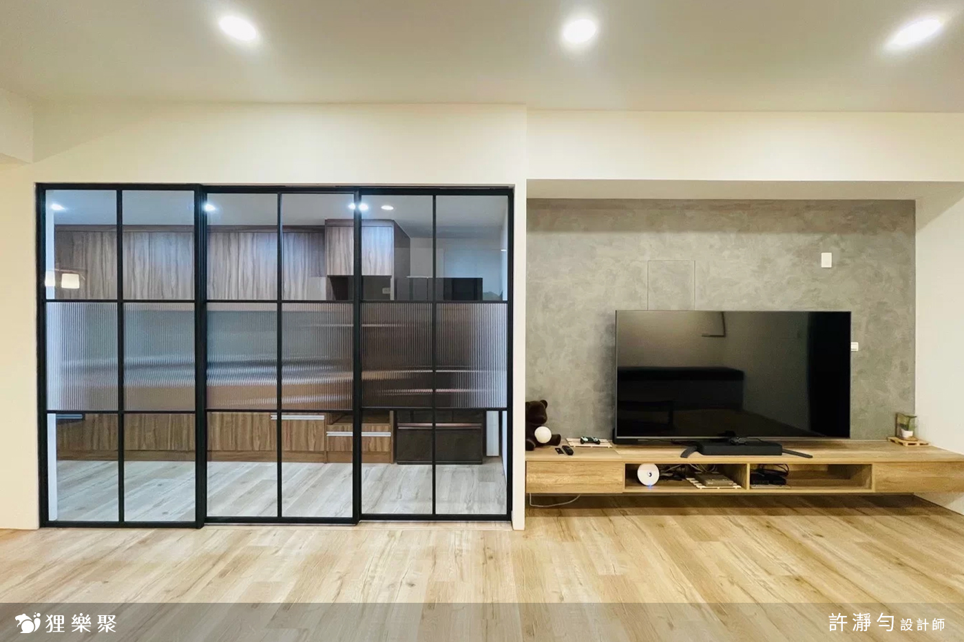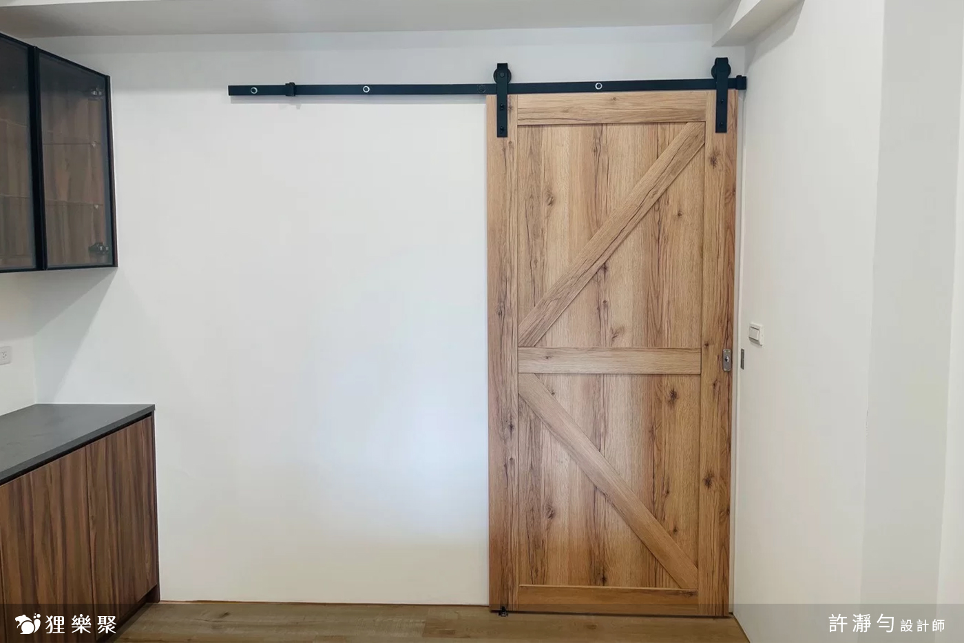 整個空間以工業風設計為基底,但又融入了現代風格的概念,讓整個空間仍呈現出簡約的質感,設計師大量地選用木紋做為材料,深深淺淺的木紋帶來相當溫暖、踏實的感受,再添入黑色的元素如推拉門、細鋁框櫃門、穀倉門的軌道等等,剛直有力的線條勾勒出空間的立體感,使得這個舊屋翻新裝潢重新擁有了靈魂。