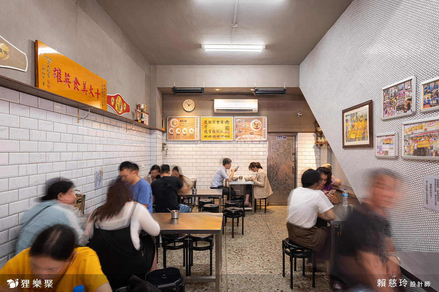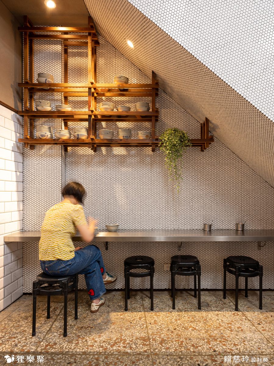 牆面設計的部分大量使用馬賽克,帶來復古的視覺感受,與磨石子地板共同呼應著數十年的老店帶來的溫暖氛圍。