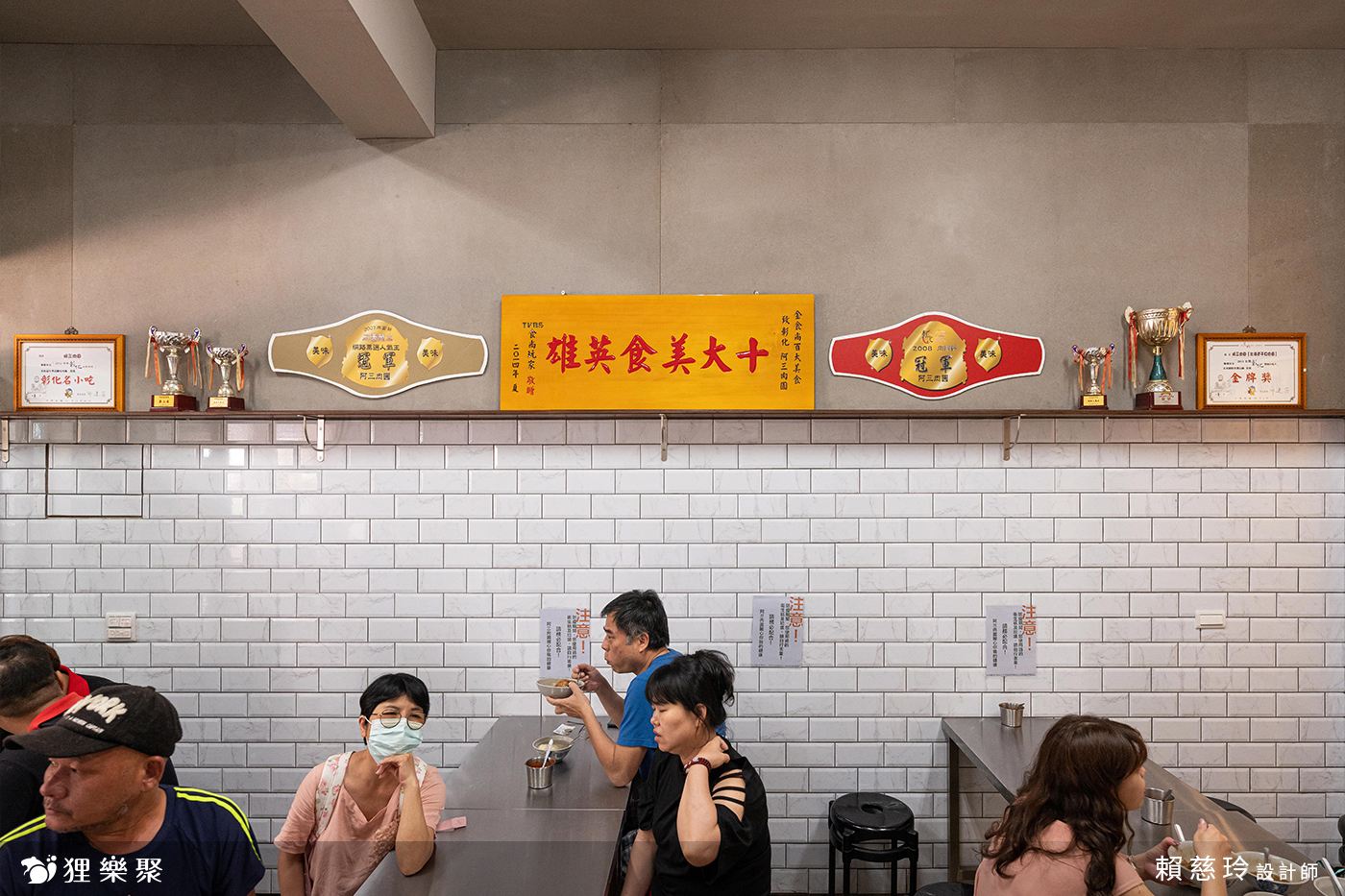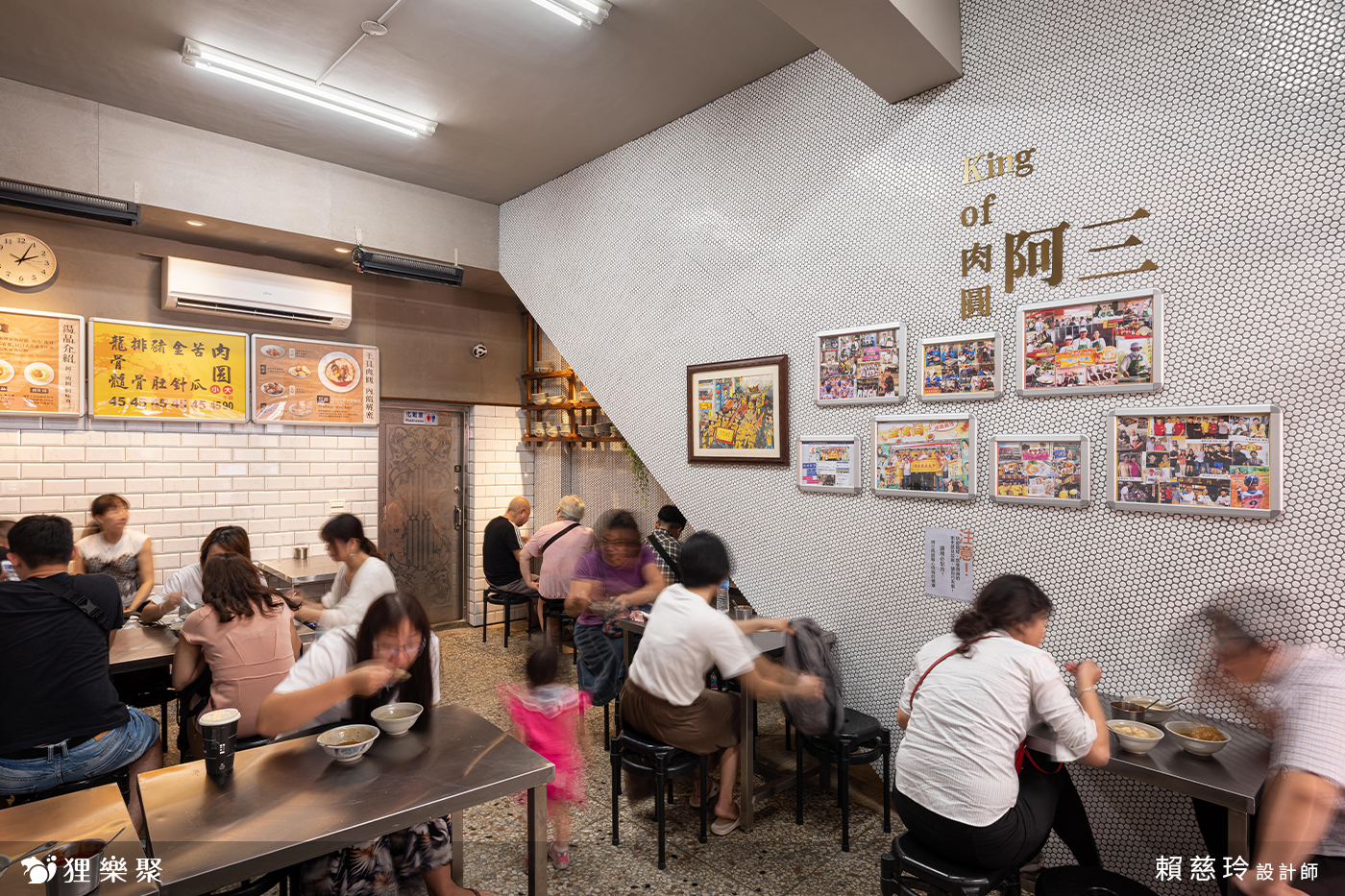 這個案子是彰化排隊美食名店阿三肉圓的用餐區形象改款專案,由於店長相當念舊,希望能夠保留店內的磨石子地板以及鋁窗門面,並且延用原有的不鏽鋼桌及黑塑膠圓椅,維護傳統元素之餘,再加入工業風的元素來改變輕裝,讓人同時感受到古早味的溫暖且又能耳目一新。