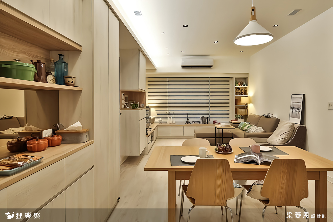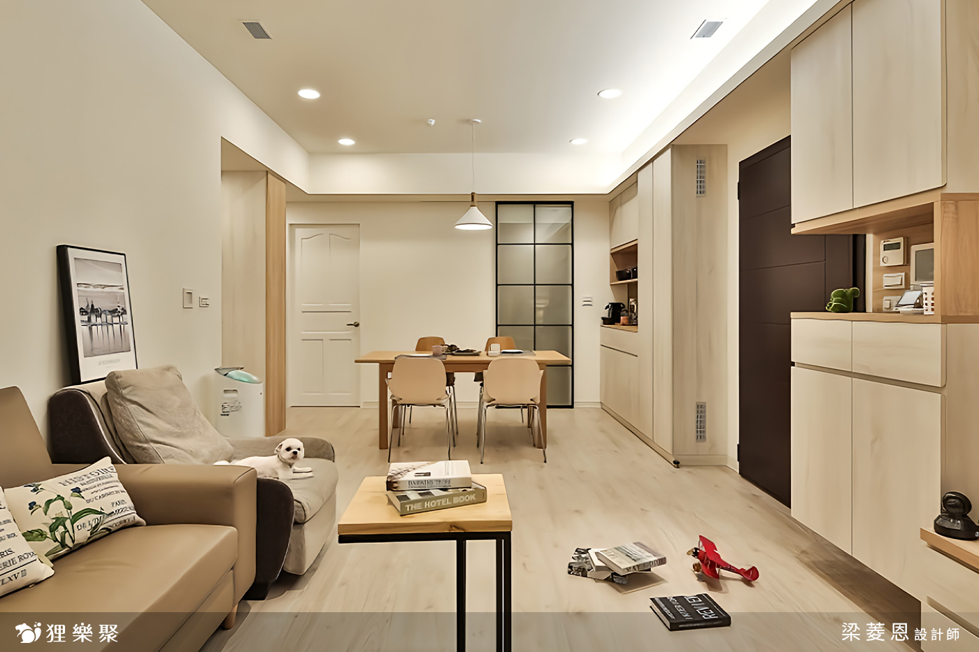 屋主一家是小家庭,買了預售屋,有著大量的收納需求,所以在規劃空間時皆以機能性為主要考量,空間造型則希望以簡約為主。有些人的裝修審美偏愛中式或歐式風格,希望在預算範圍内做到極盡奢華的效果,相比之下,有些人則認為不需浮誇的装飾,偏好簡單的高級感,比如在與此案屋主討論多次後,最終將這個三房兩廳兩衛定案為極簡原木風。