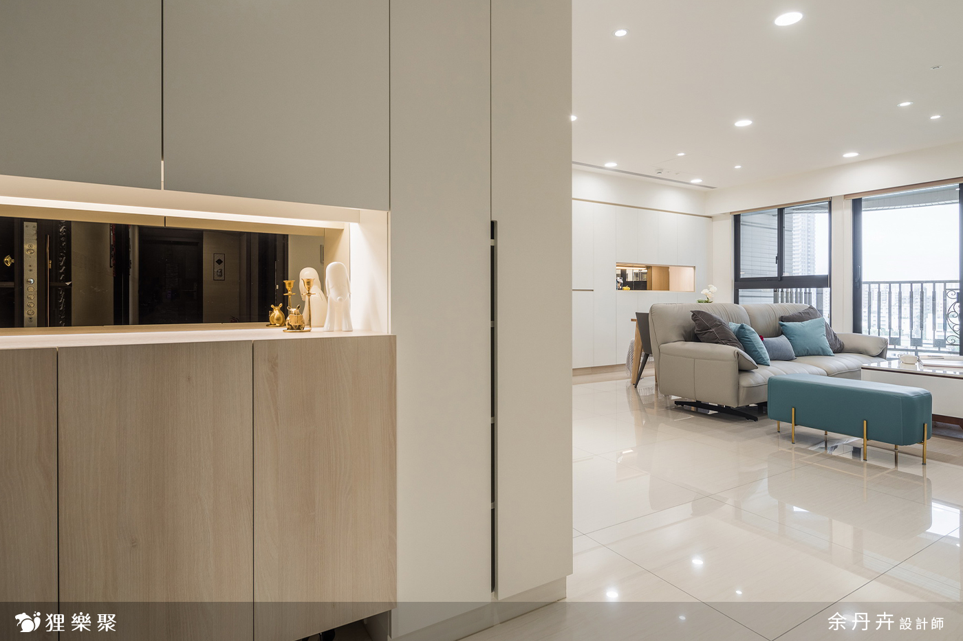 這是一間現代簡約風格的屋子,業主是一個小家庭,需要大量的收納空間,選擇使用環保的系統櫃來施作。在收納櫃不少的情況下,讓空間維持簡約有許多要考量的地方,例如要收納的物品有哪些?物品的尺寸?物品使用的頻率?這些都需要先行考慮,才能做出最適合居住者的設計。而小孩房間設計以小主人的喜好來完成,由內而外地打造完美的夢想家。