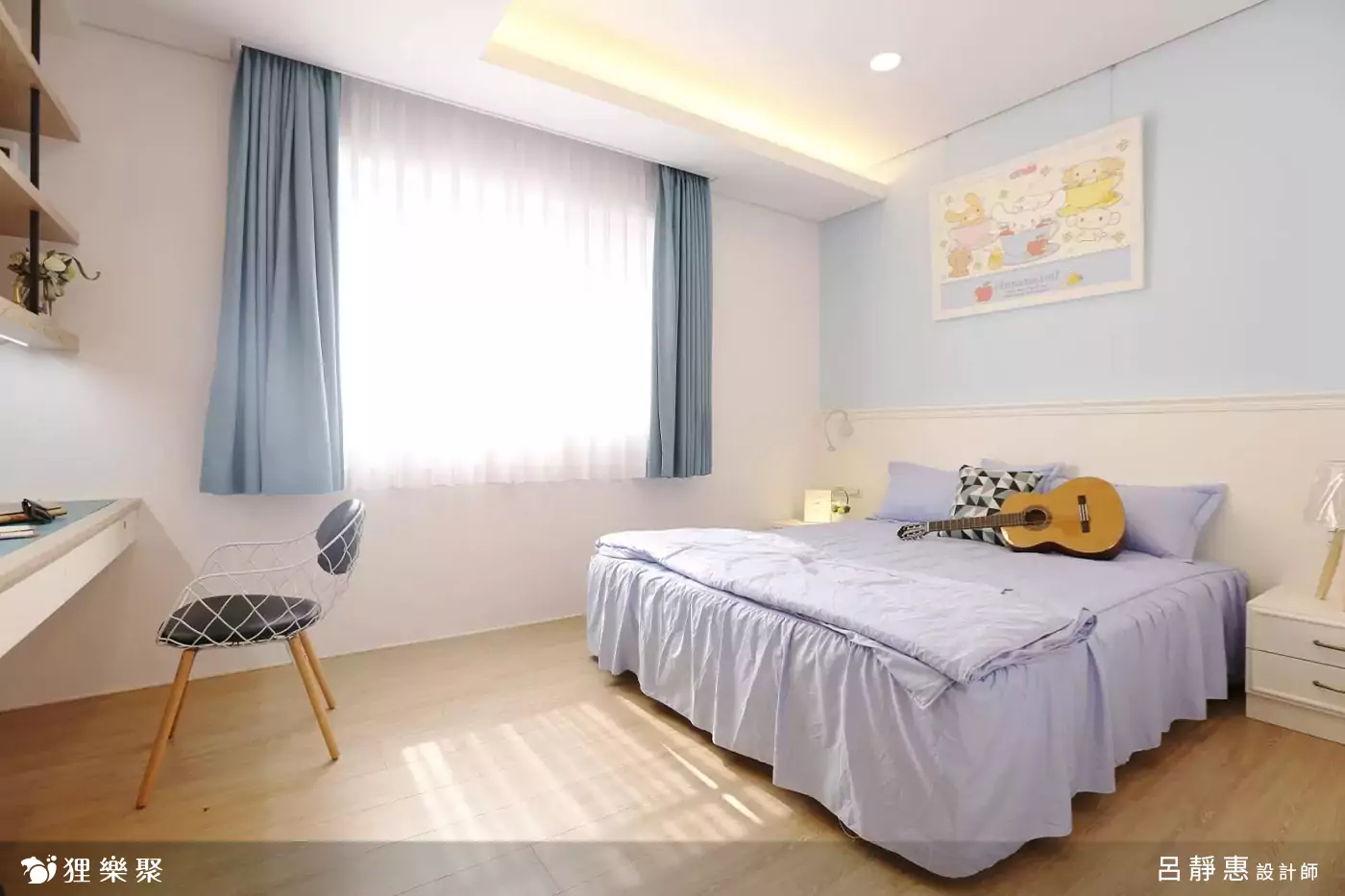 業主本身很注重小孩的教育,所以在二樓規劃一個可以一起讀書、討論的開放式書房,同時做為孩子們的小天地,而三個小孩各自的私領域空間以每個人分別喜愛的主題色來打造,呈現出獨屬房間主人的個人風格。