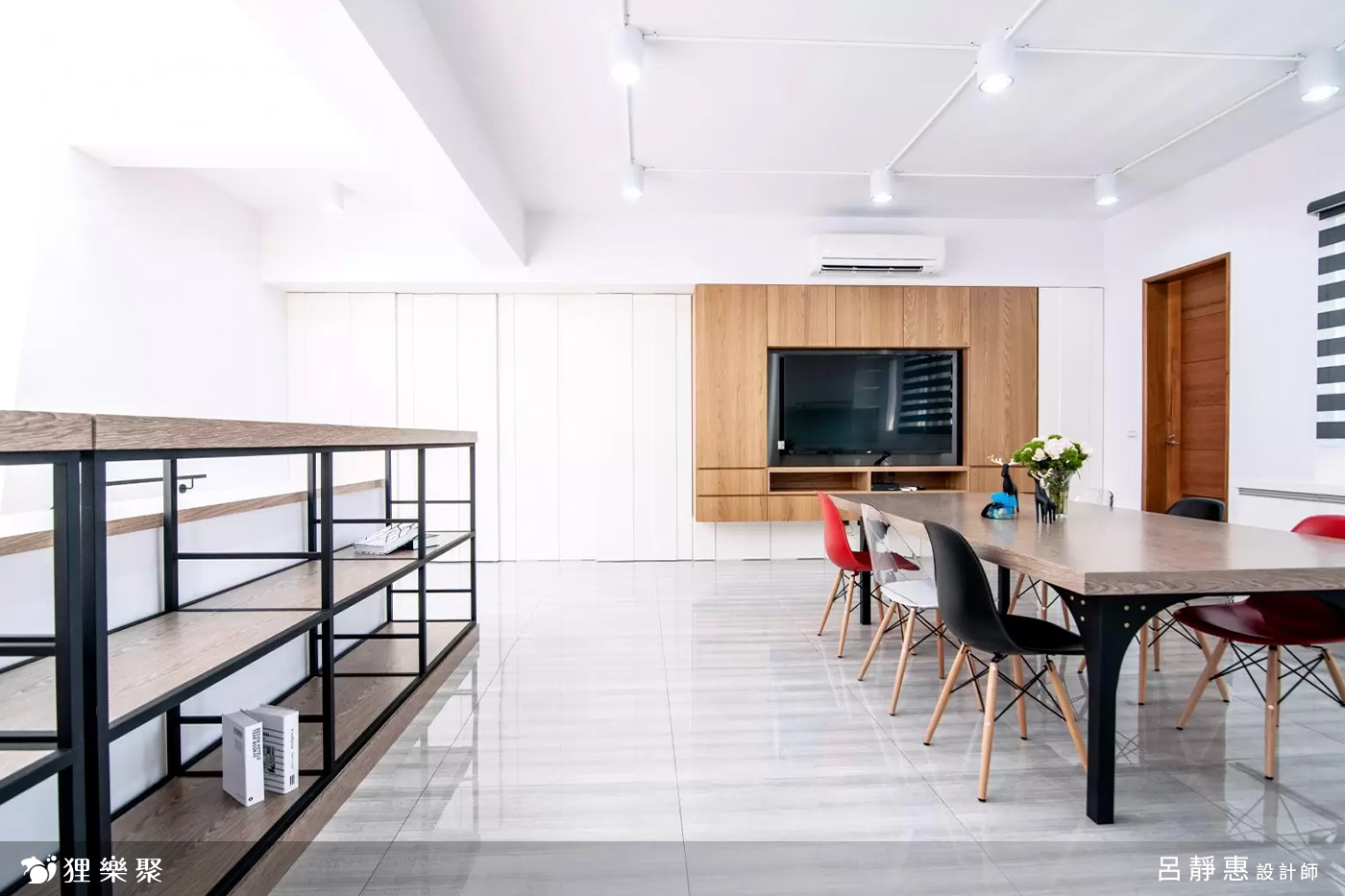 三樓則規劃為女屋主的開放式香皂工作坊、家事房與兩間客房,方便業主的學生學員及親朋好友來訪。同時三樓也增加系統廚具,搭配好清潔的結晶鋼烤板,利用大面積的白、灰、黑搭配工業風的燈具,自然好整理之外,也呈現出簡約有活力的氛圍。