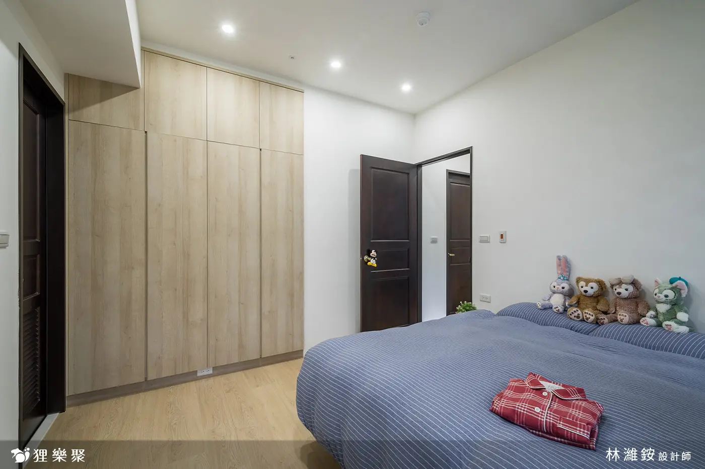不同於其他風格會選擇在主牆做跳色的設計,純白牆面是無印風格所強調的重點之一,整體能夠呈現純淨無壓力的質感,並且凸顯實木書牆作為空間的重點,更能透出靜謐的書香味。