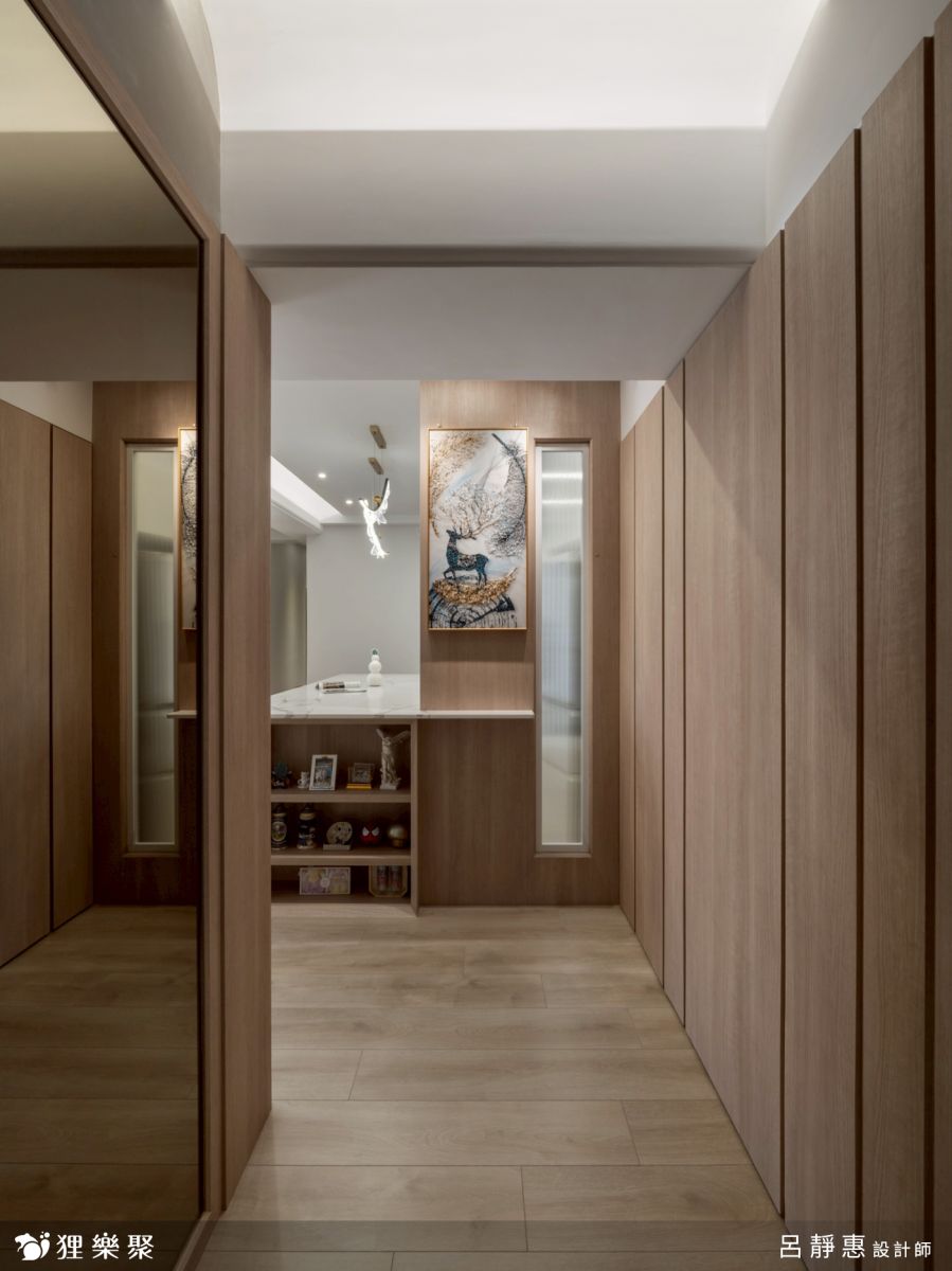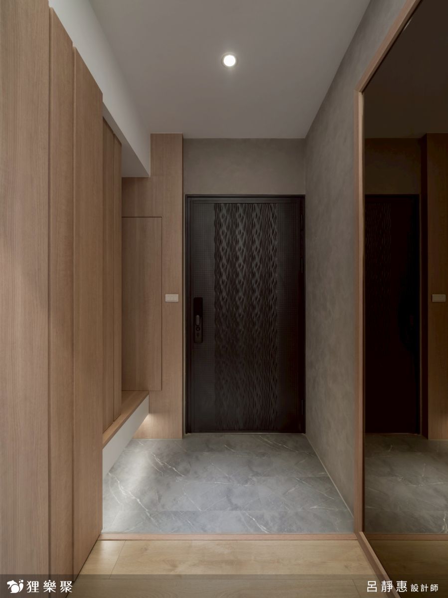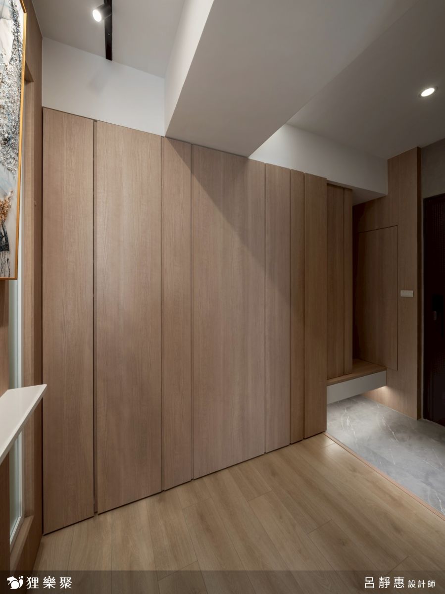身處都市高壓環境,屋主渴望擁有一個能舒緩壓力、放鬆心情的家。設計師採用北歐風暖色系與現代風簡約線條,讓整體空間更顯通透柔和。玄關部分結合中國庭院框景元素,透過視覺錯覺線條規劃對稱設計收納牆面,方便屋主擺放電器與鞋具,放大使用率的同時也使空間保有寬敞感受。公領域則以灰白色調與木元素搭配,並於餐廚區設計了中島,不論備料、用餐皆很方便,完美結合美感與實用性。臥室部分延續北歐風的明亮與現代風俐落的線條,打造實用的收納櫃,圍塑靜謐且舒適的休憩空間。透過現代北歐風的舒適與實用設計,創造質感機能兼具的42坪木質宅。