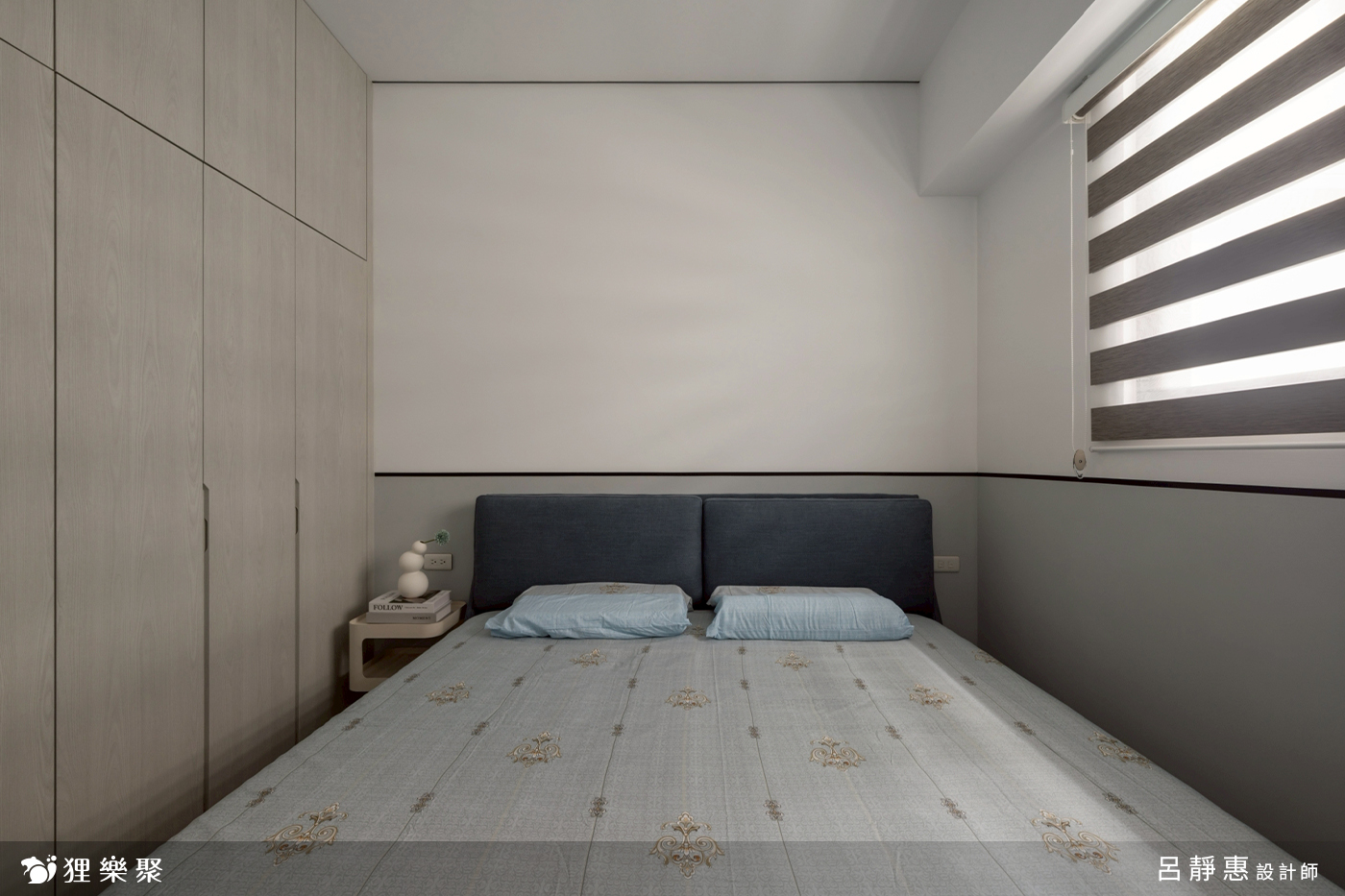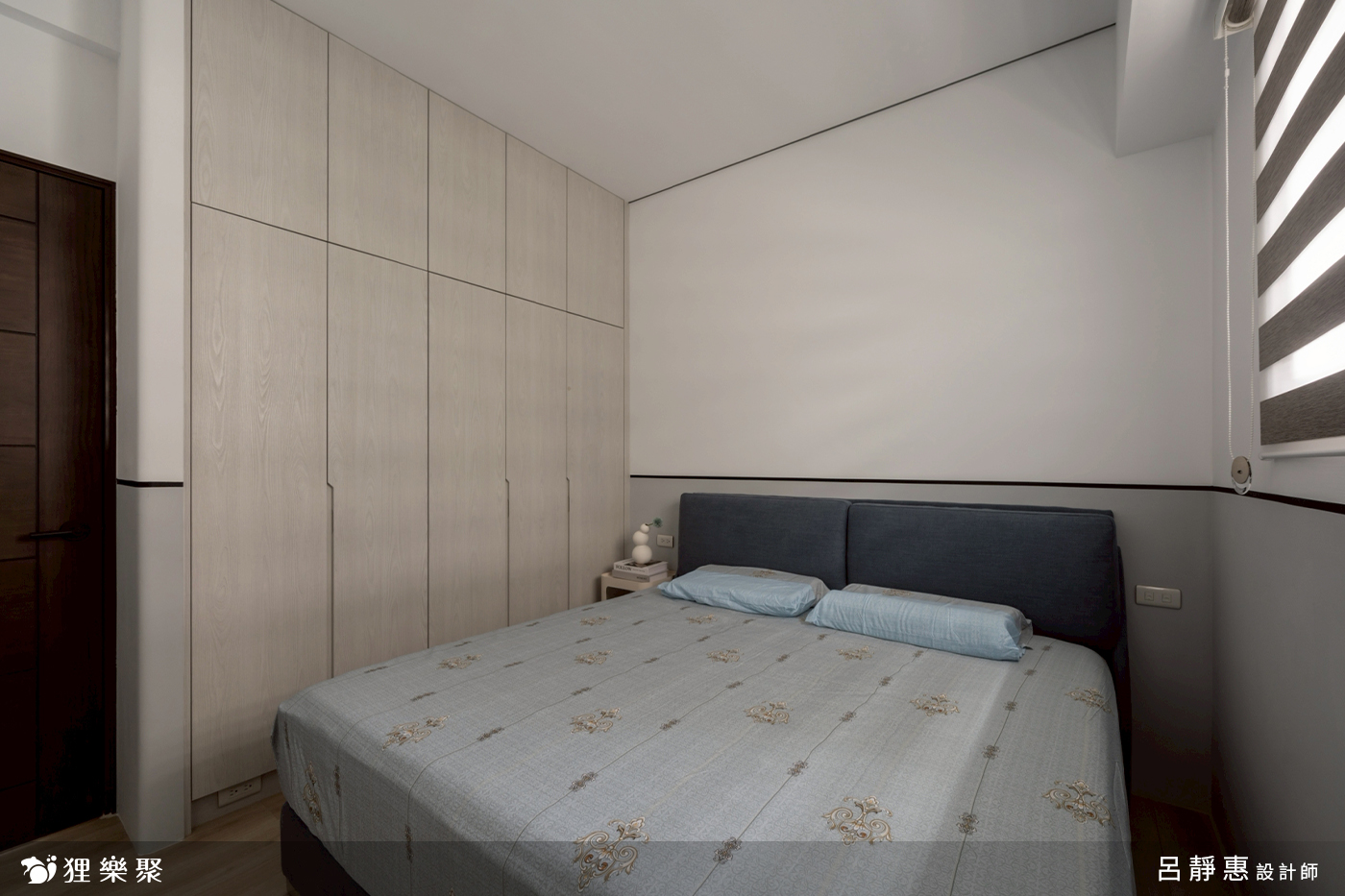 臥室延續北歐風明亮及自然調性,局部融入現代風的俐落線條,依照使用習慣為屋主分區規劃收納,讓衣櫃、梳妝櫃與床邊櫃各有獨立機能,確保睡眠區舒適溫馨。床頭牆選用低彩度特殊漆與簡約木格柵修飾,塑造靜謐的休憩氛圍,讓屋主結束了忙碌的一天後能好好放鬆休息。