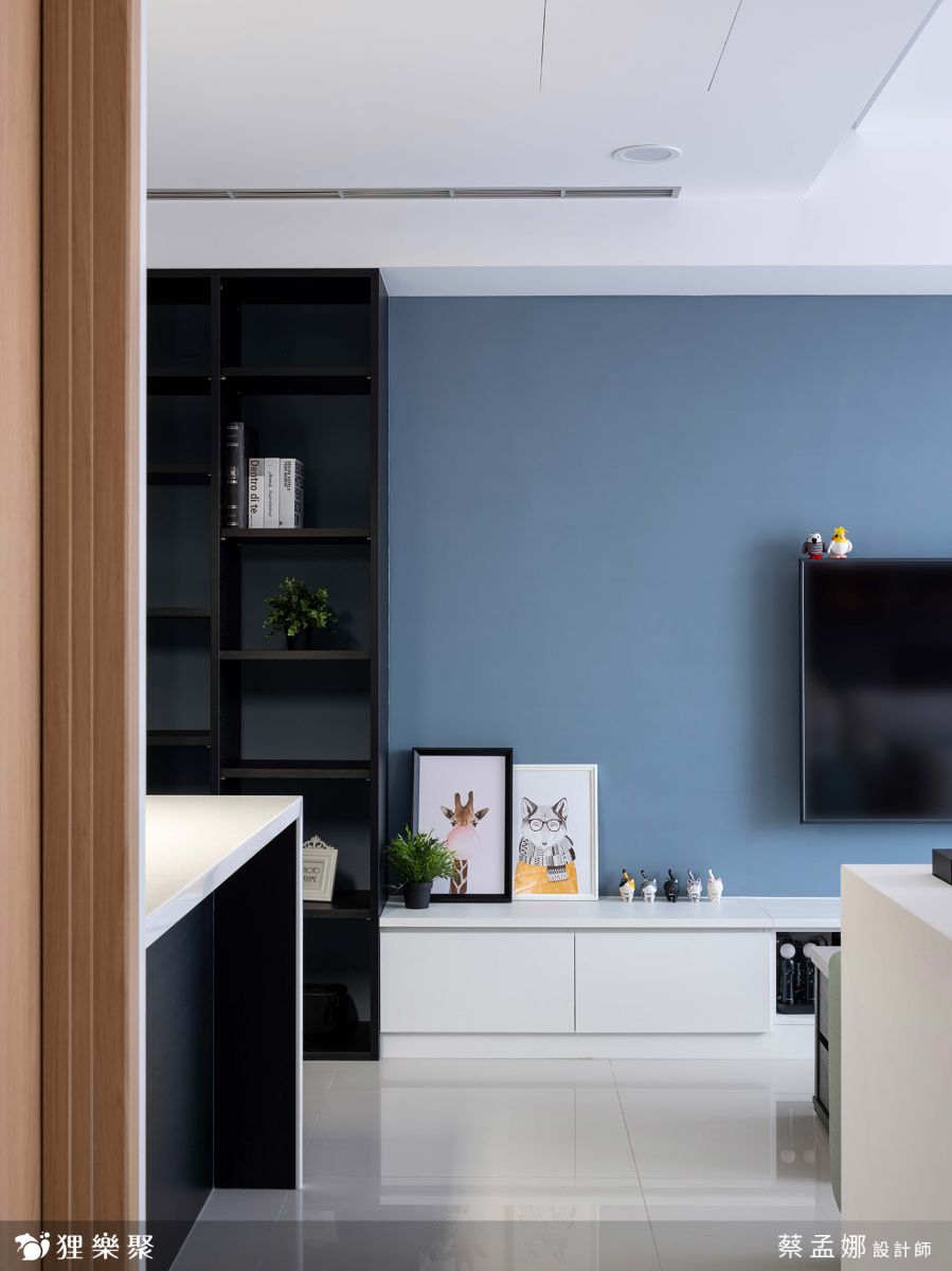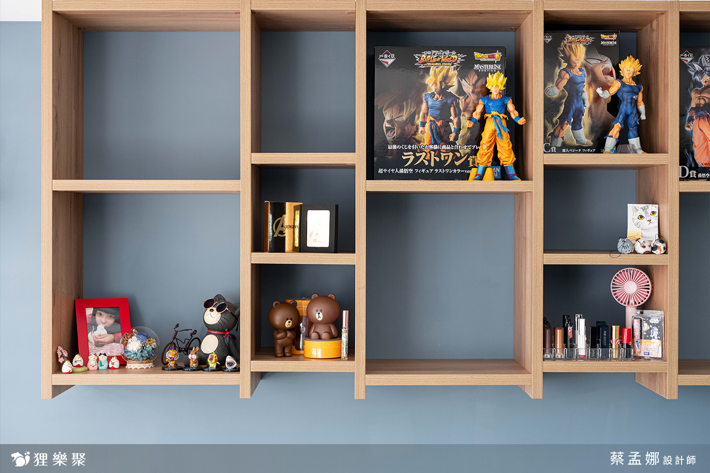 ▲ 後方牆面的木頭吊櫃同時作為客廳展示櫃