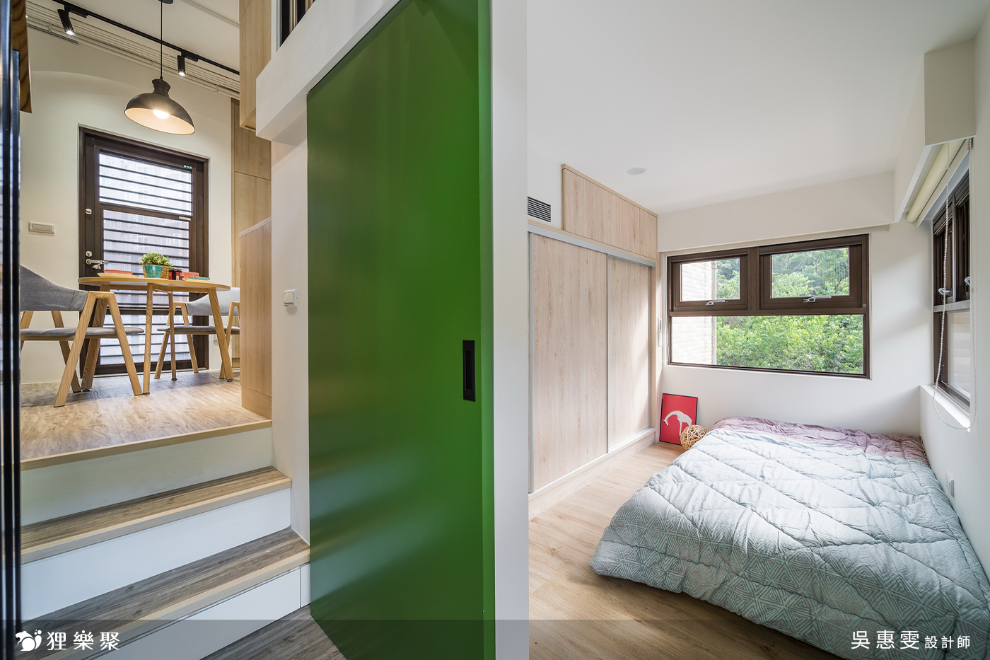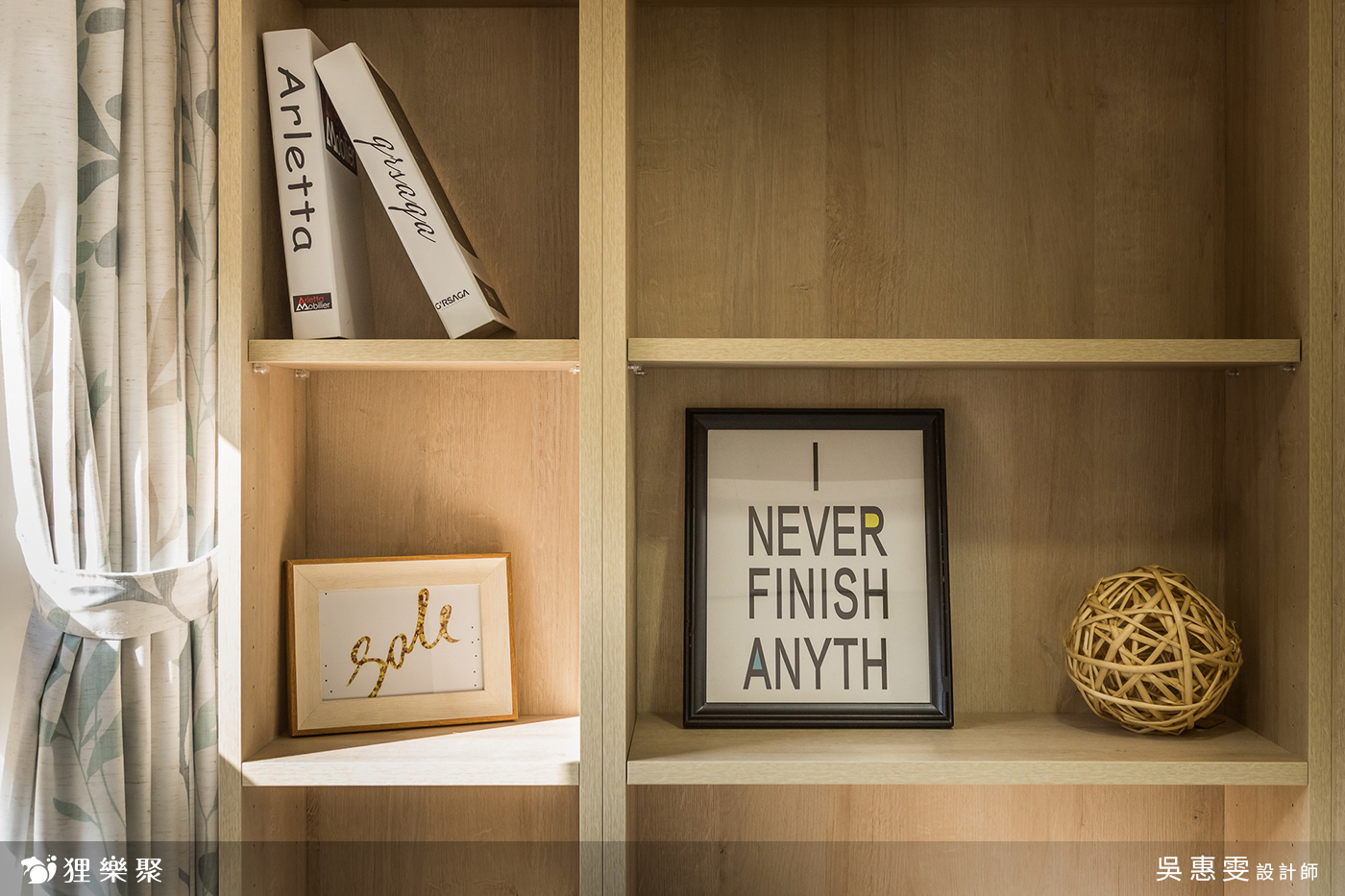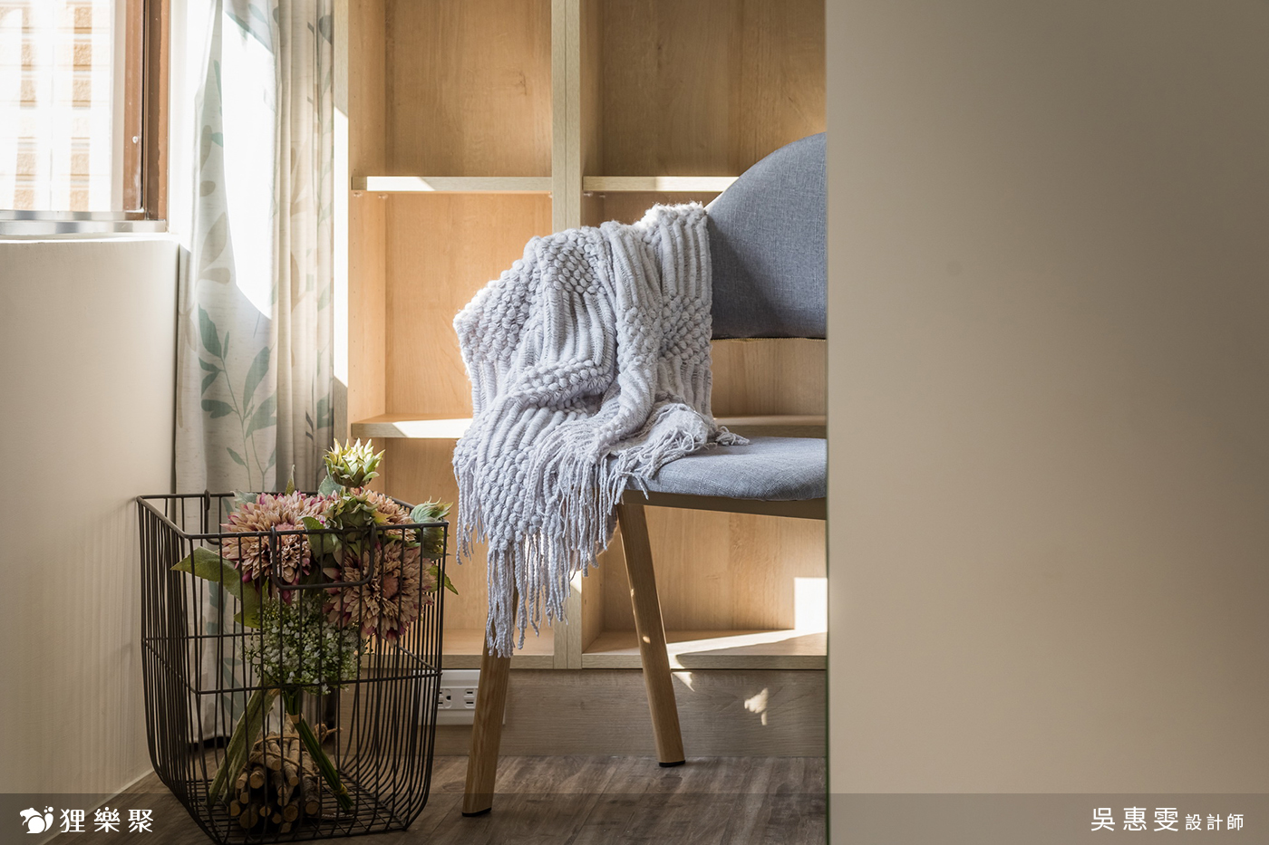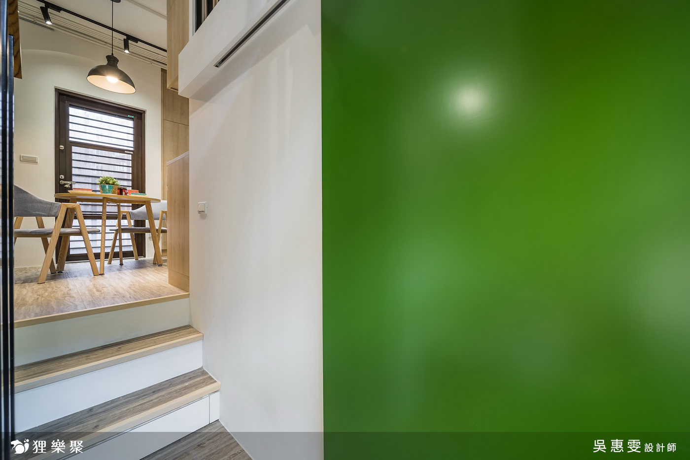 巧妙地融合了木作收納樓梯與系統書櫃,讓原來單調的樓梯除了增加收納的功能外,還成了屋中賞心悅目的一個角落,串起不同空間。
