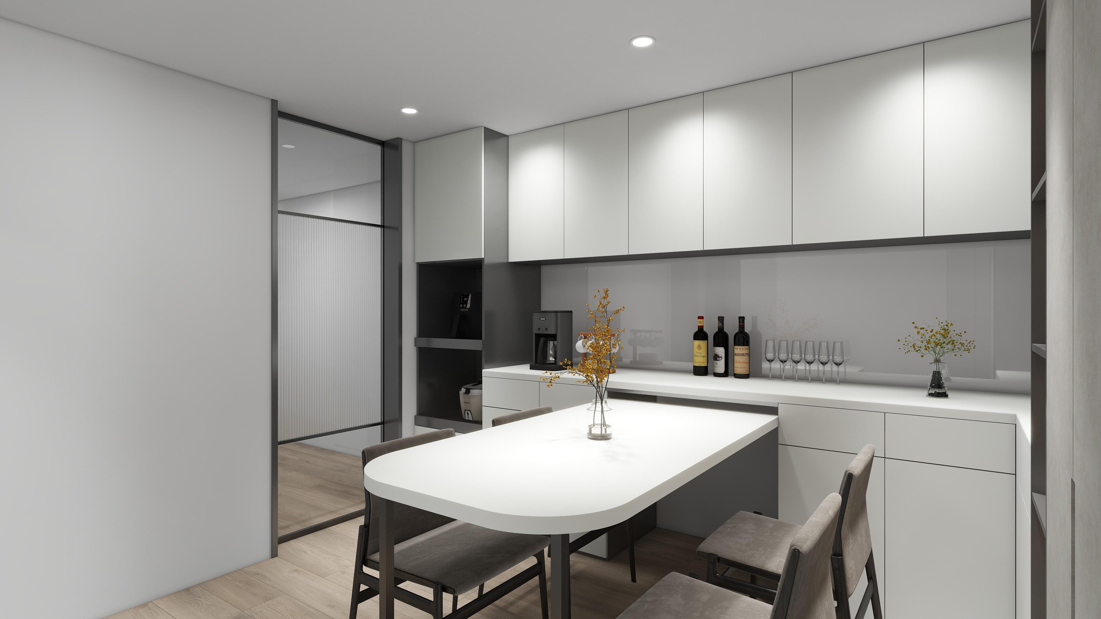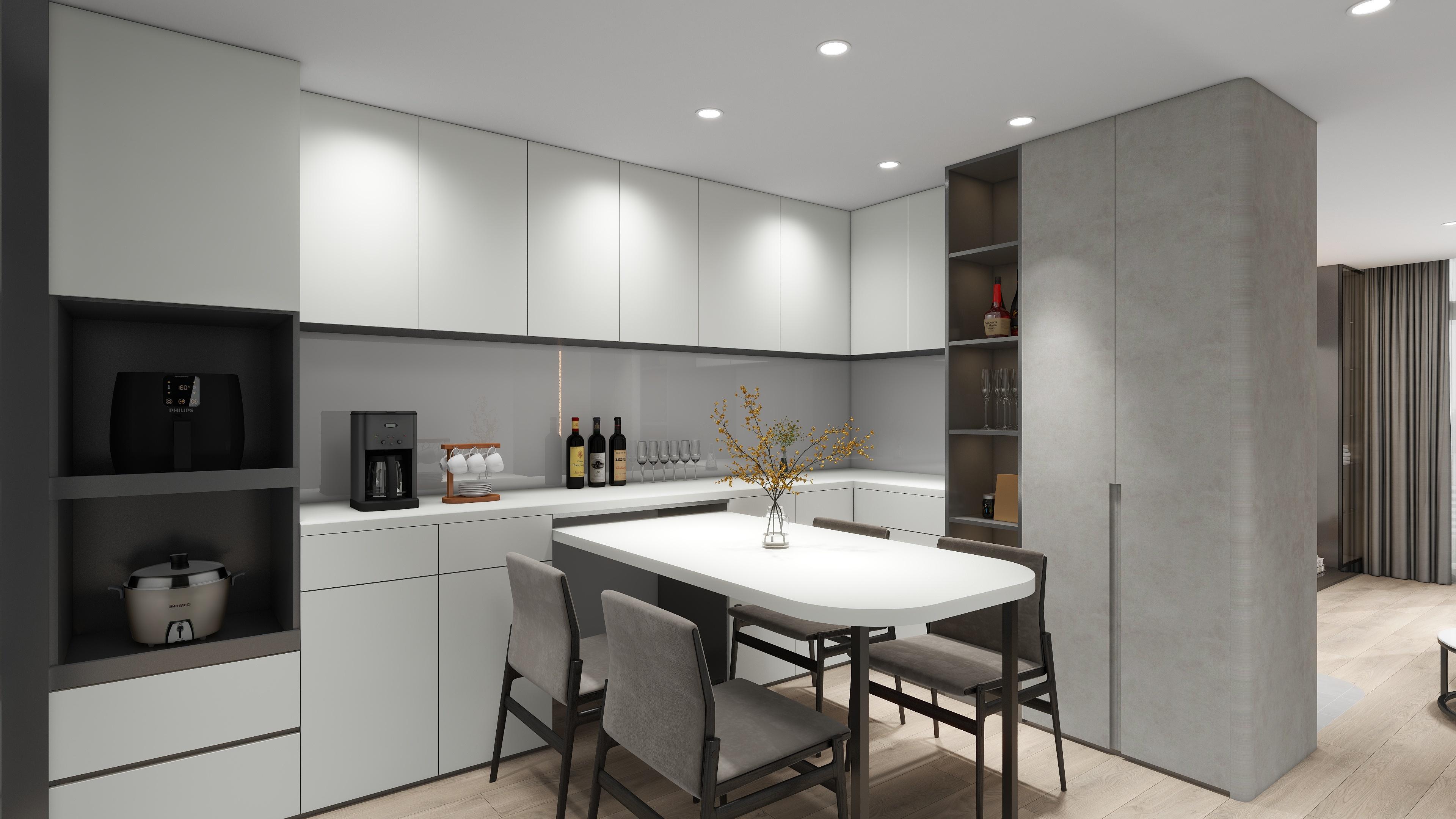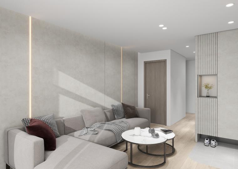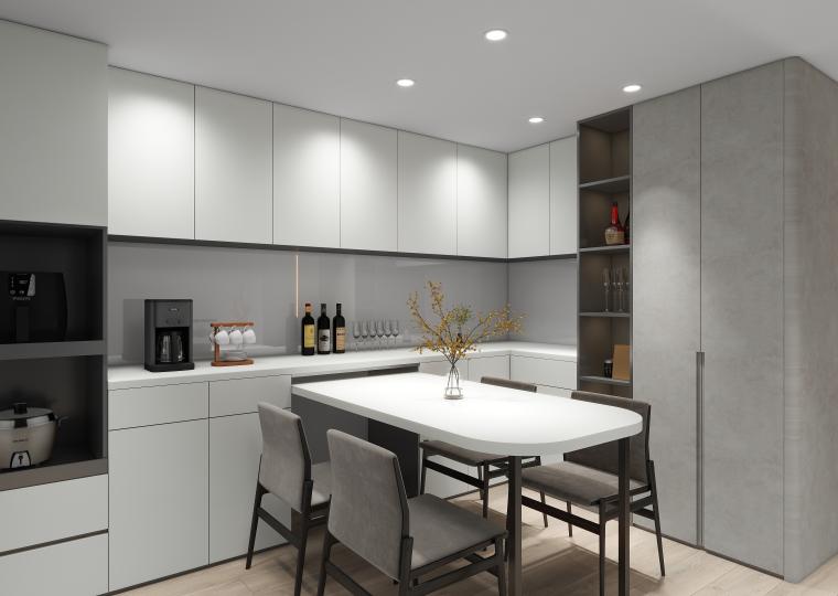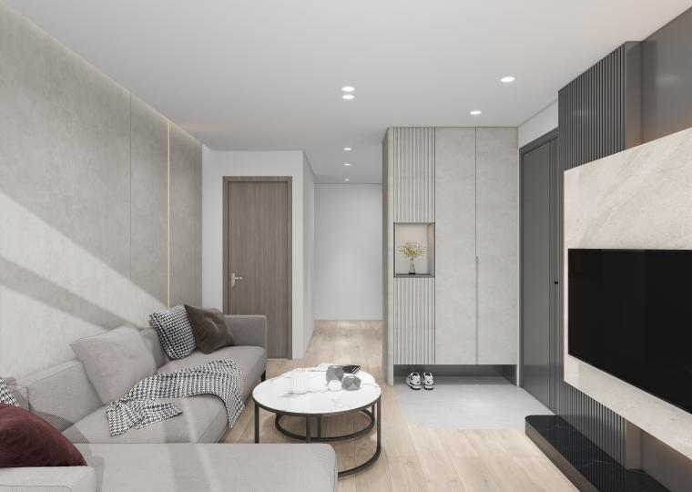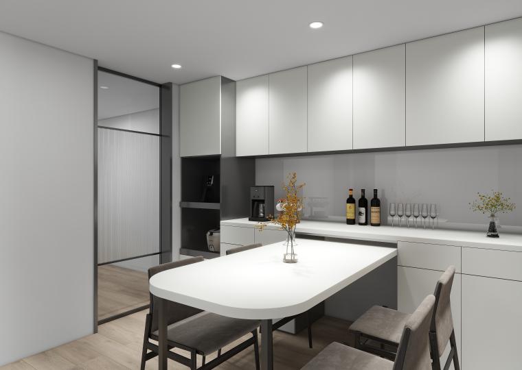 延續現代簡約的設計語彙,整體以柔和灰白與溫潤木紋為主軸,呈現理性與溫度並存的空間語言。客廳以低彩度搭配局部光源,創造出層次分明的視覺延伸,並強化整體氛圍的靜謐感。 開放式廚房結合用餐區域,不僅提升生活動線的流暢性,也讓家人之間的互動更加自然親近。 大量收納巧妙融於空間,保持整潔同時兼顧美感。整體設計在細節中體現秩序感,讓每一處都回歸實用與美學的平衡。