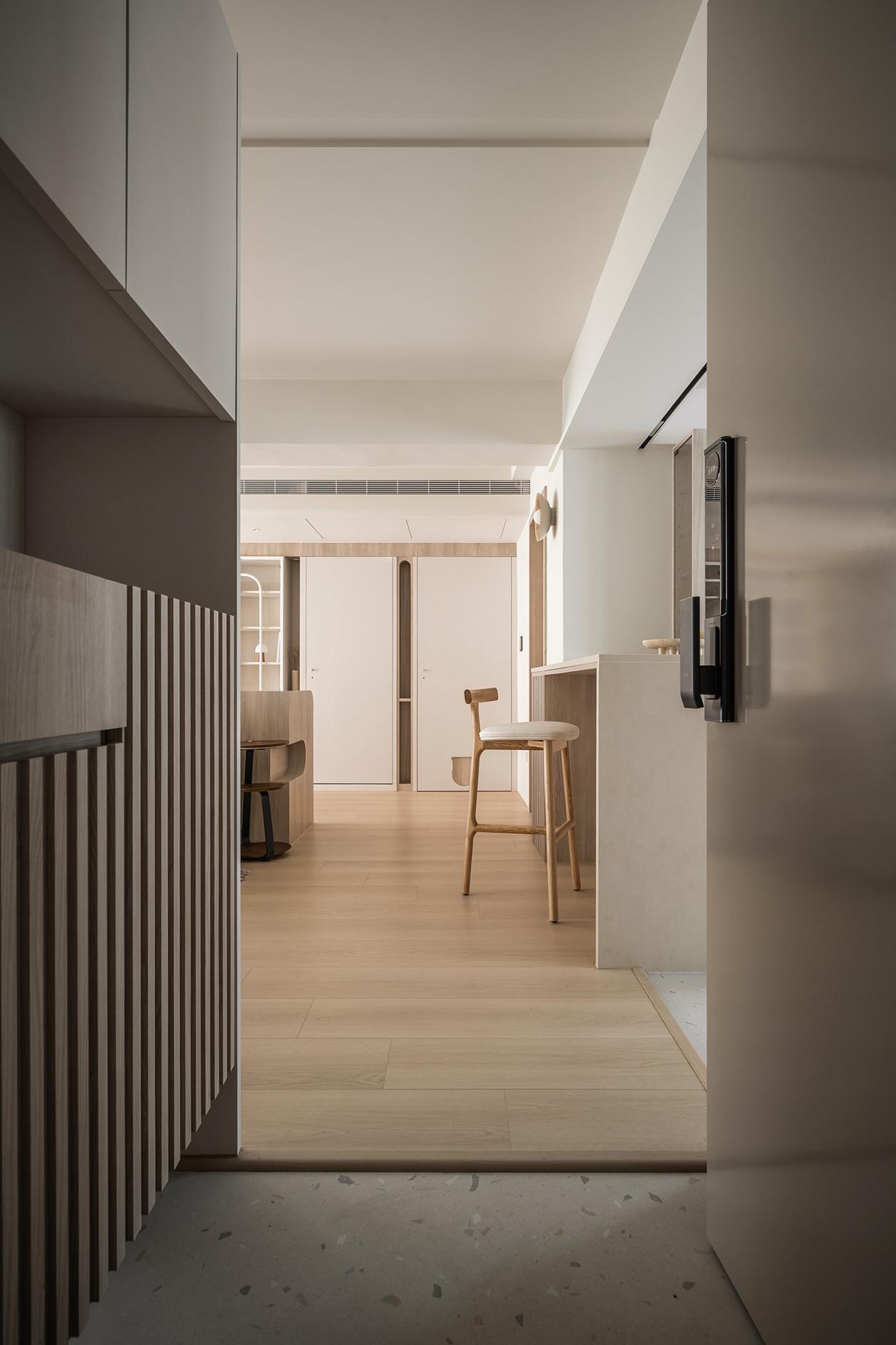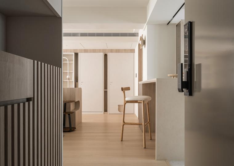 本案為老屋翻新,為30坪2房2廳的空間格局,以人與貓咪的共融生活為出發點,空間色彩選用奶油色,搭配低飽和度的木紋,營造柔和溫馨的舒適氛圍。在不同的生活場域中加入許多貓咪的設計元素,利用櫃體與壁面打造貓跳台、貓窩與貓門,讓貓咪住起來更舒適自在,貓咪透過與主人的日常互動增溫彼此感情,同時在細節裡利用木作結合鐵件搭配小弧形的元素,巧妙讓空間呼應貓咪柔軟的視覺感,在漫漫午後時光,體現平凡卻幸福的日常。