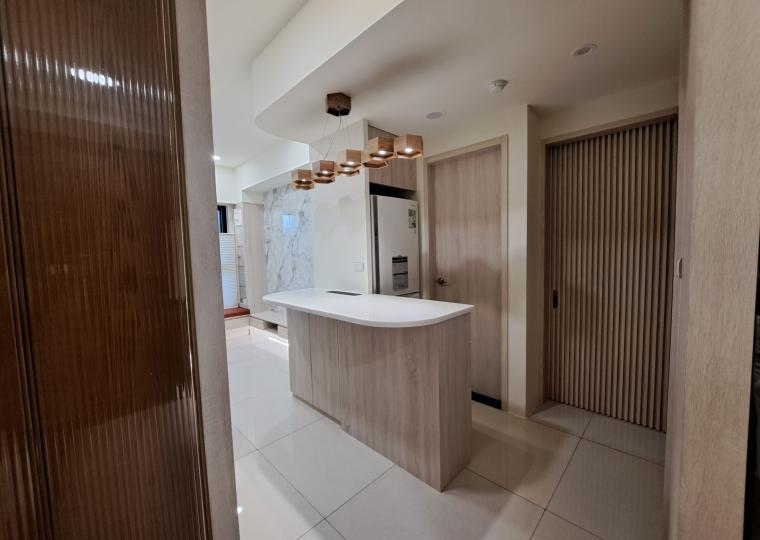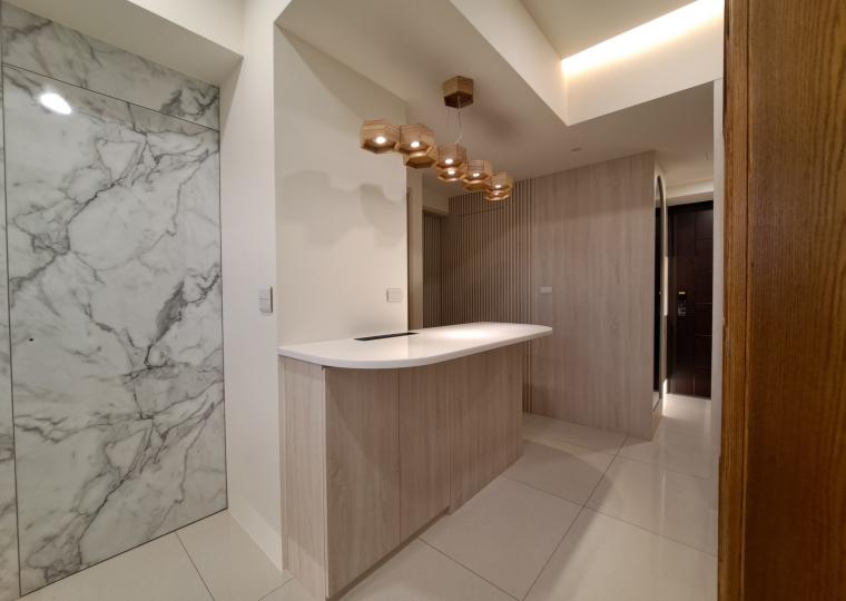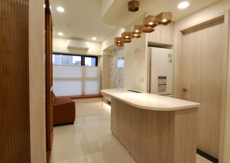 3. 餐廳-延伸廚房設備收納空間, 並用簡易吧台作為餐桌, 也可保有移動動線
