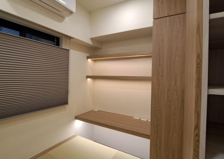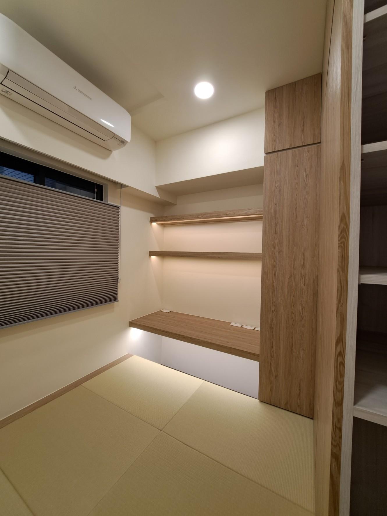 6. 客臥-以榻榻米方式設置工作座椅, 利用角落空間設置大量收納, 榻榻米也可以作為小孩遊戲區域