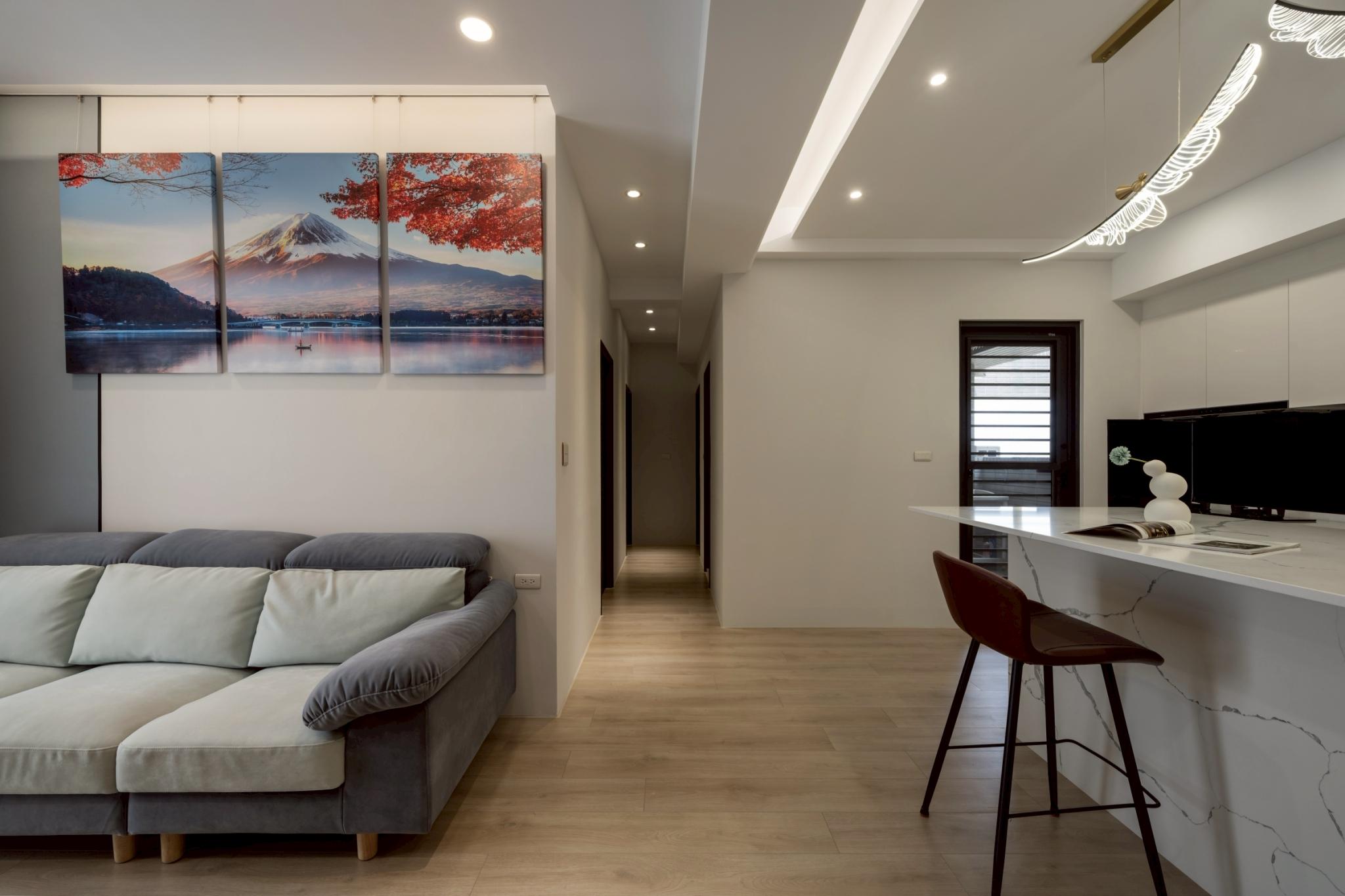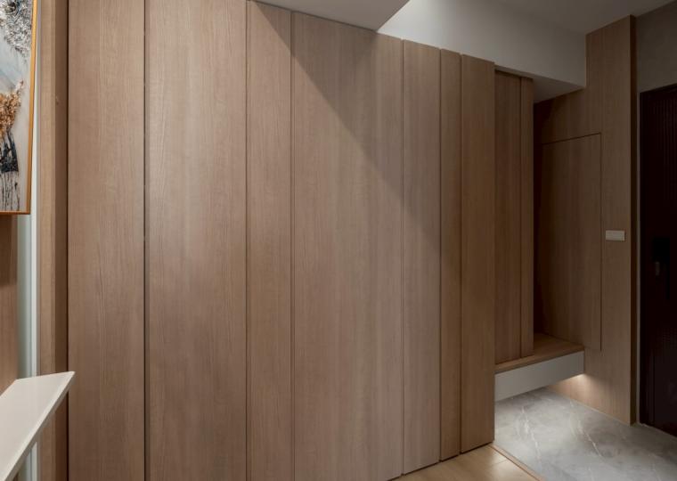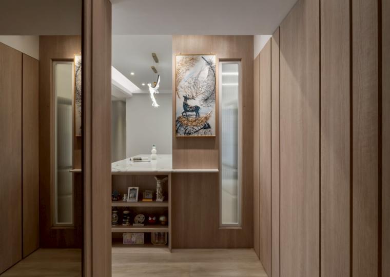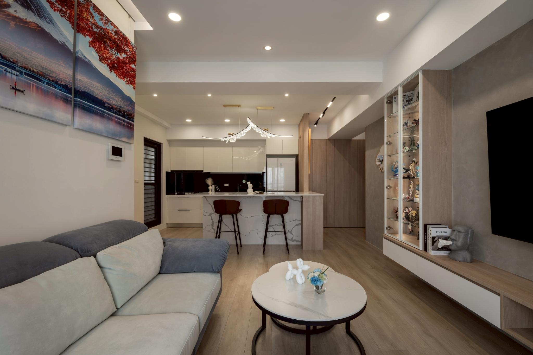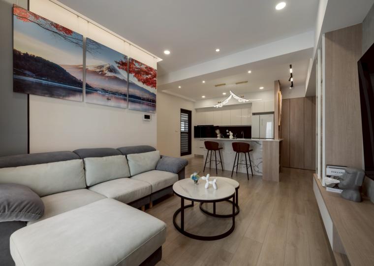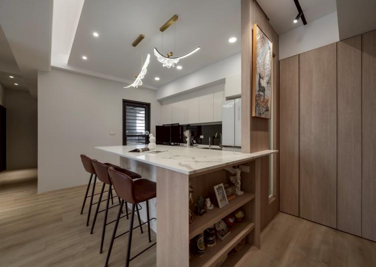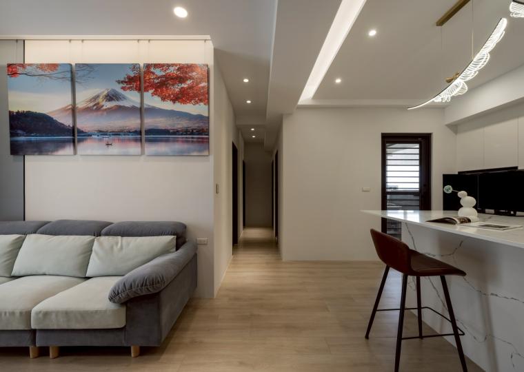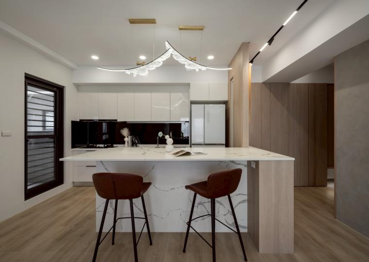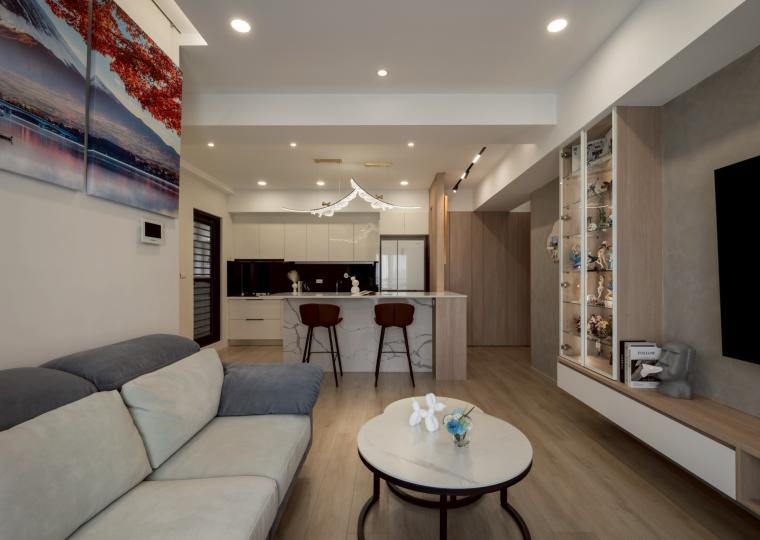 這間42坪的新成屋融合北歐風與現代風裝潢,主要著重收納設計,搭配木材質與白、灰色調。在玄關、客廳、餐廚區營造溫暖、舒壓氛圍,襯上多功能的中島設計,讓屋主有如置身咖啡廳般輕鬆自在。私領域以現代風簡約線條打造充足收納,兼具美型與實用機能,透過裝修為屋主形塑優雅居家。