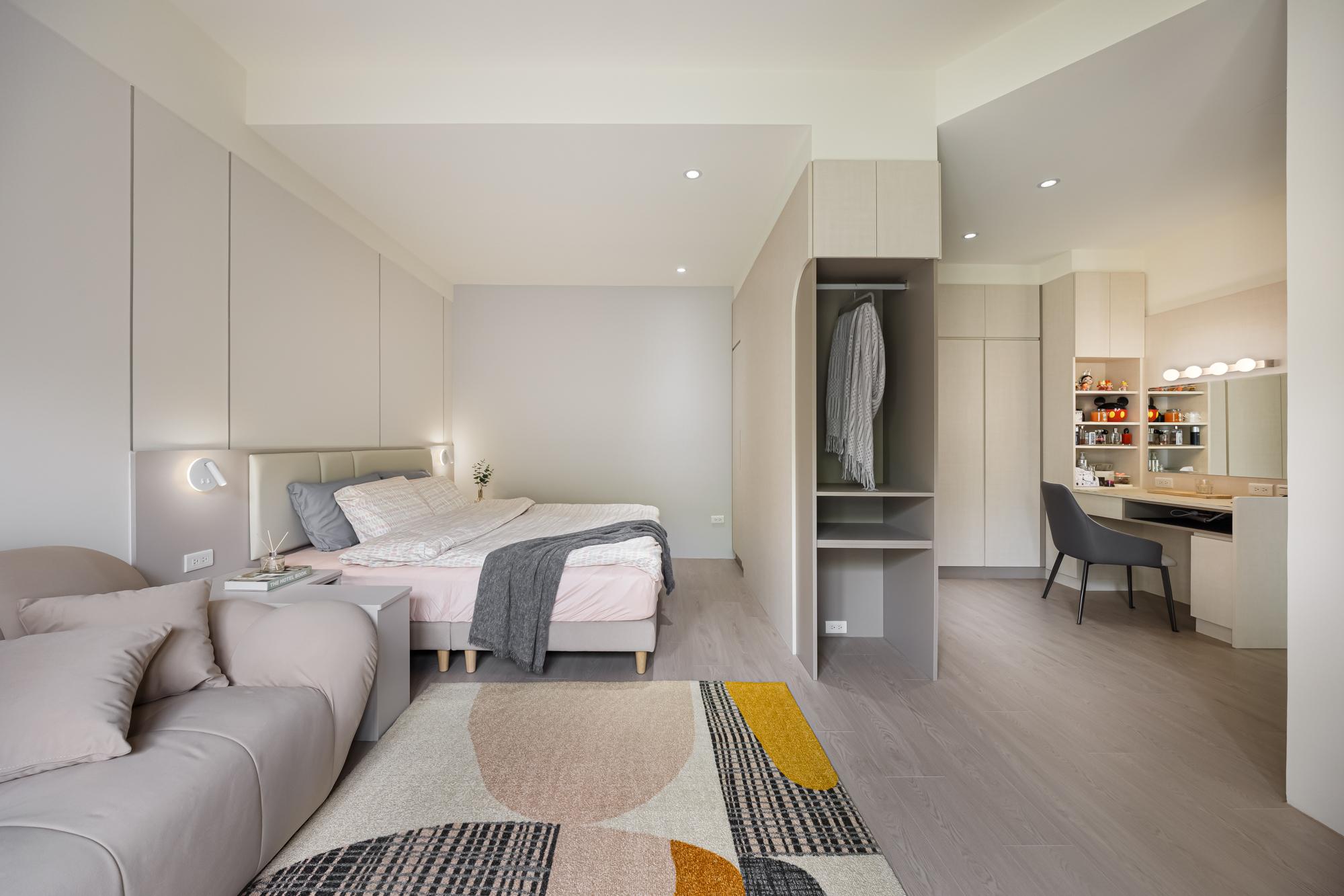 本案以現代、北歐、日式、奶油等多重風格,透過材質串聯,展現居家的層次感。客廳金屬與木質對話,主臥雲朵奶油風療癒,男孩房跳色活潑,孝親房日式清靜,書房沉穩低調。細膩設計滿足每個家人的需求,打造溫馨且舒適的混搭風療癒宅。
