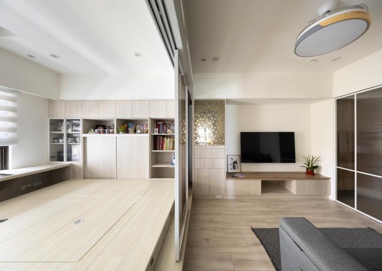 柔霧玻璃、木質地台、低彩度的光。 這是為「安靜」而設計的空間, 不論閱讀、冥想或午眠, 都能讓身心在光影流轉中,回到平衡的軸心。