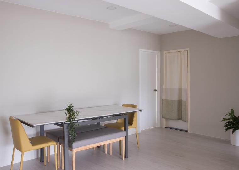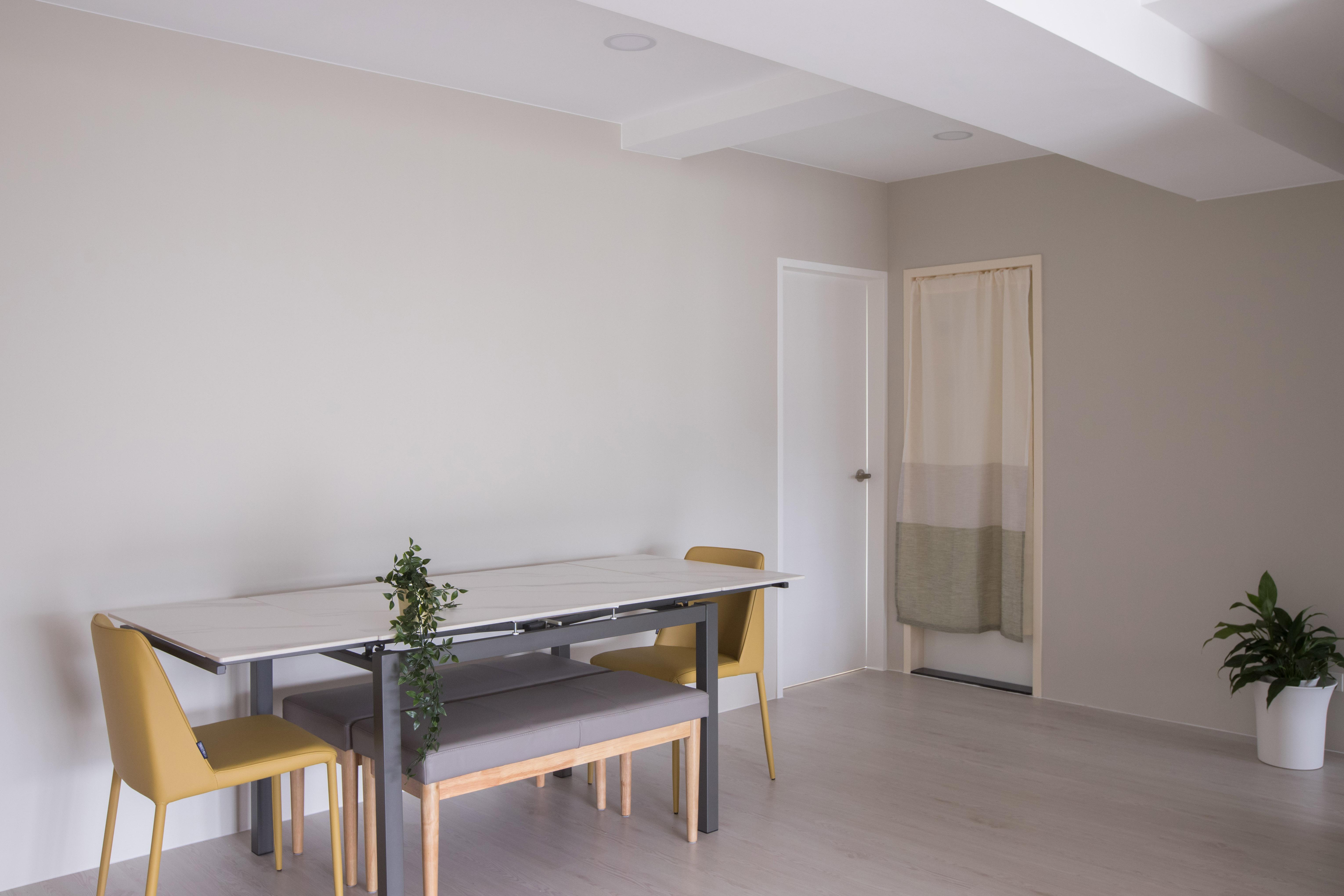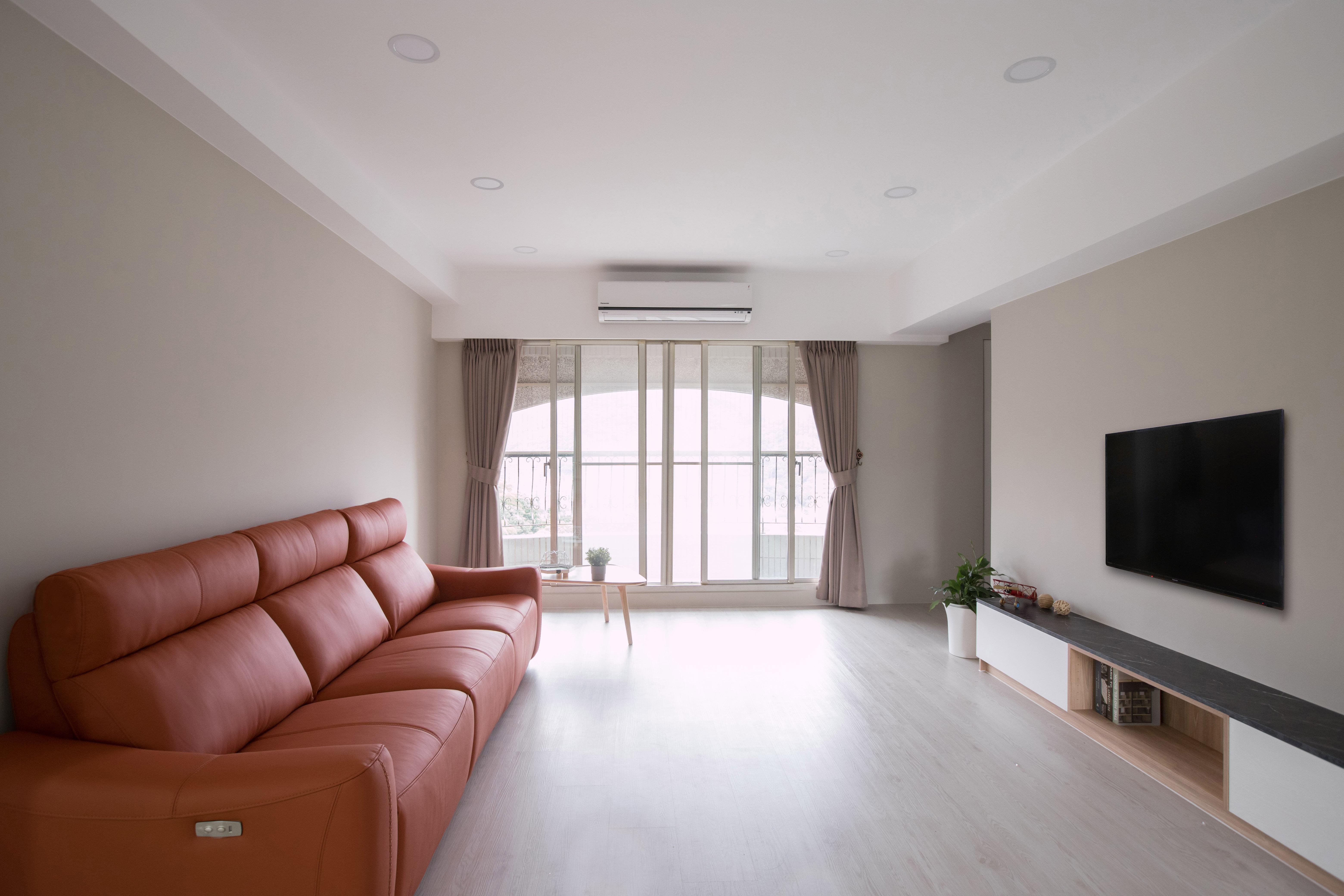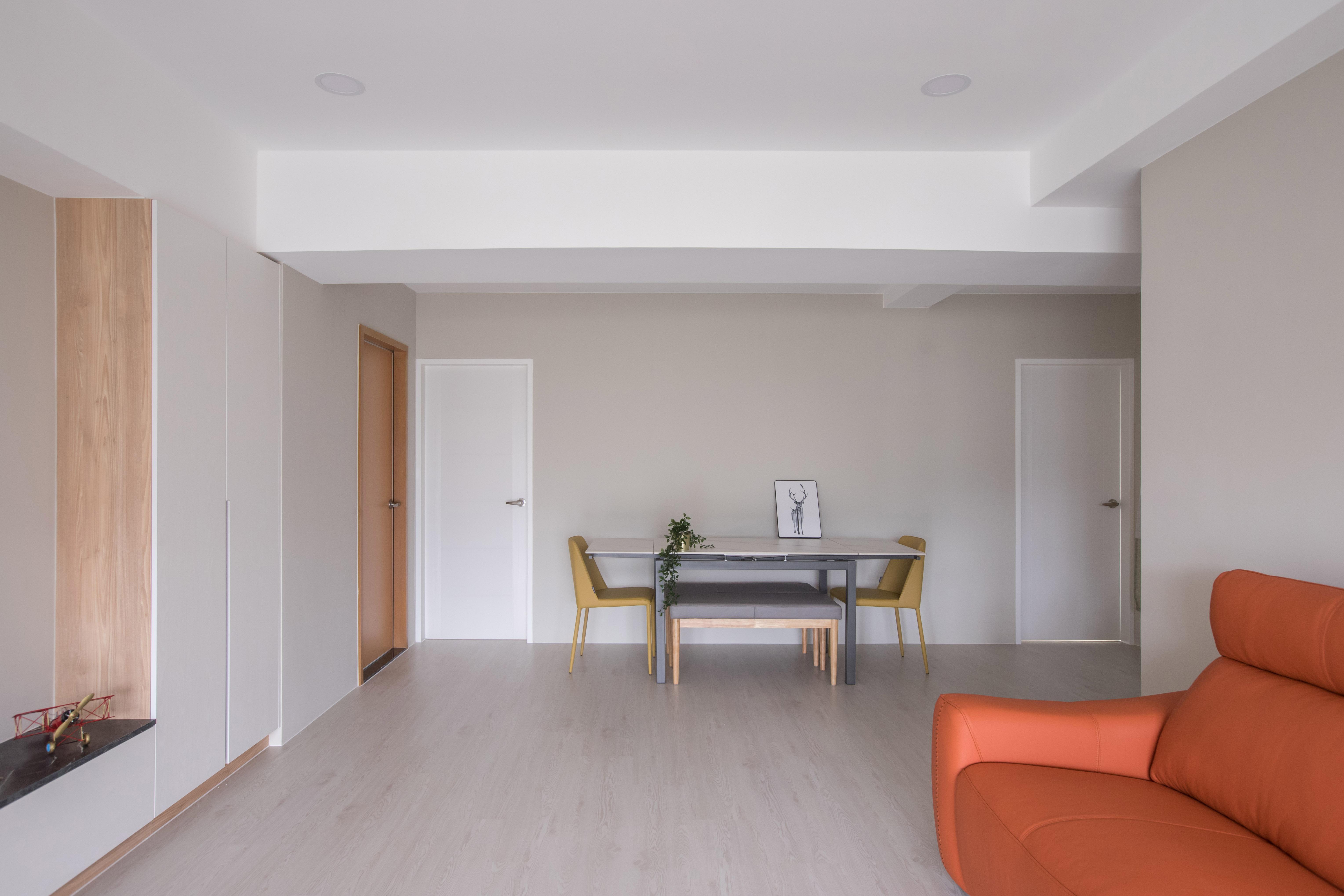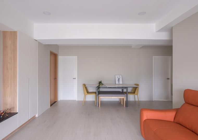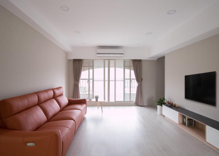 家具線條俐落簡潔,展現極簡而不失溫度的格調。開放式空間設計強調通透感,讓動線更為流暢,同時透過大面積落地窗引入自然光,提升空間的明亮度。