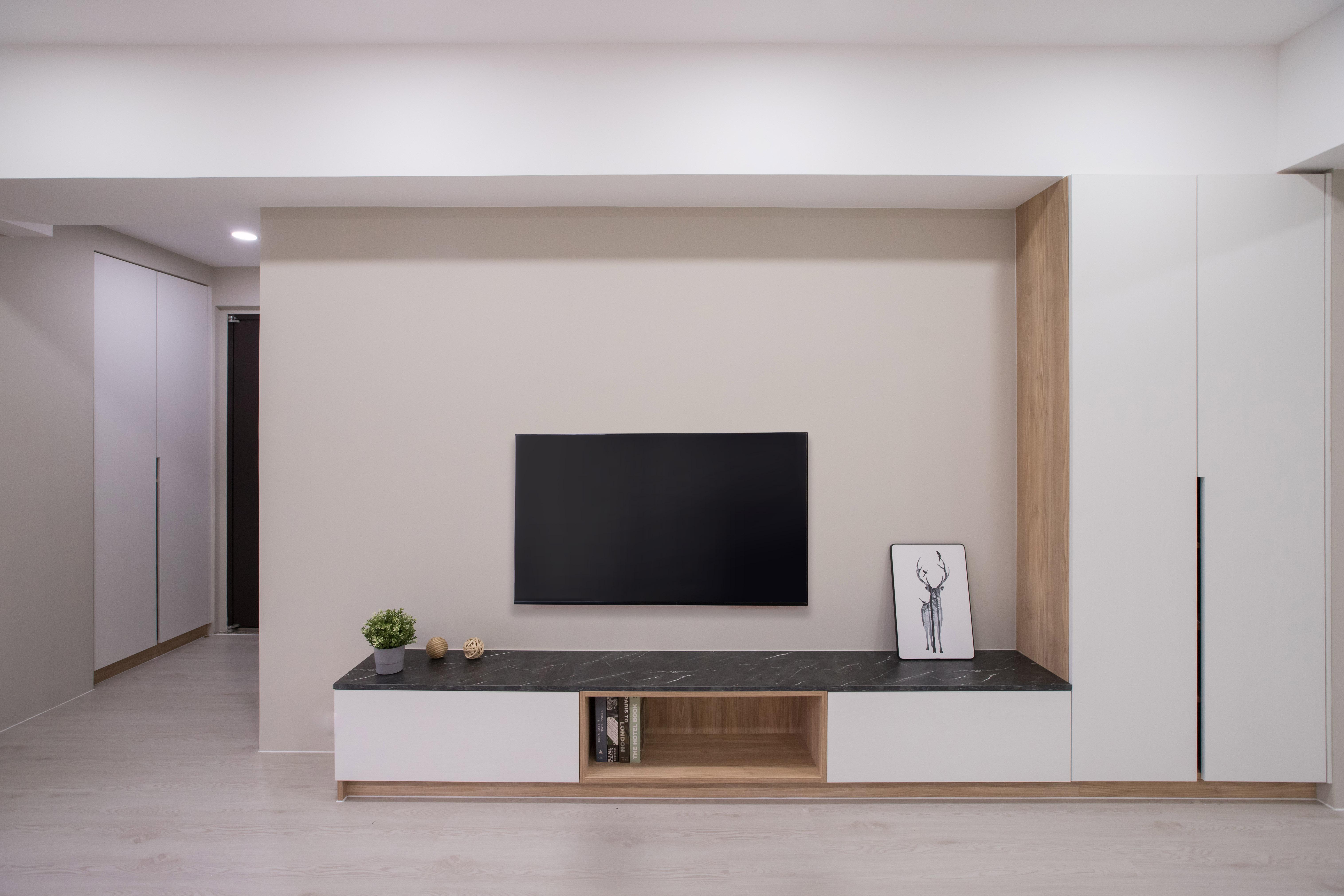 以現代簡約風為主軸,採用低飽和的中性色調,如米白、淺灰與大地色,營造出寧靜舒適的氛圍。大量使用木質與石材元素,增添自然的溫潤感,搭配隱藏式與間接照明,讓空間呈現柔和而放鬆的光感。