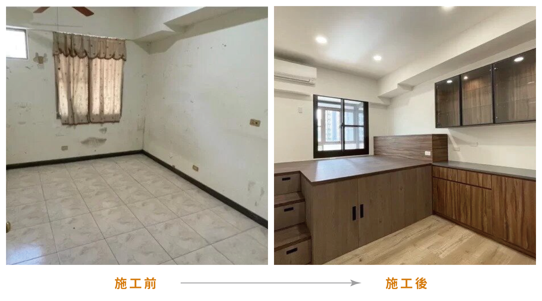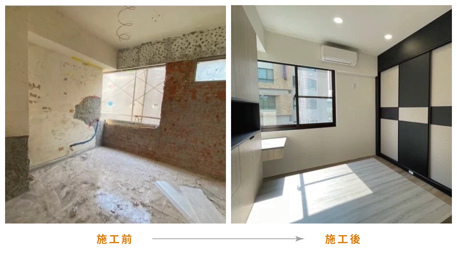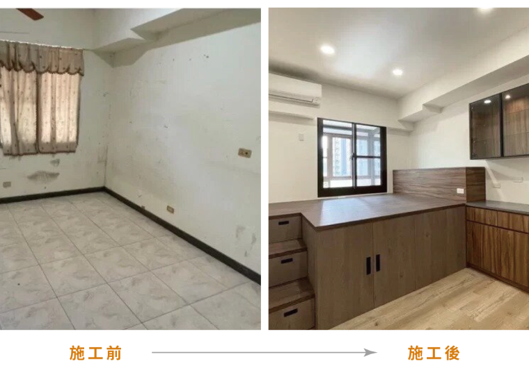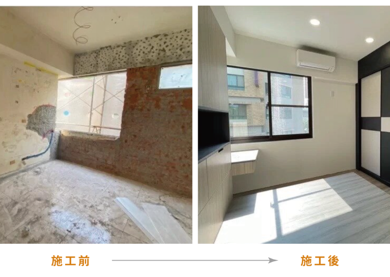 本案為老屋翻新的裝潢案例,屋齡35年已相當老舊,基礎工程也需全數翻新。屋主喜愛的風格為現代風混搭工業風設計,呈現俐落、大氣、同時不會過於粗曠的氛圍。計師師大量地選用木紋做為材料,再添入黑色的元素如推拉門、細鋁框櫃門、穀倉門的軌道等等,室內設計為老屋注入新的靈魂。