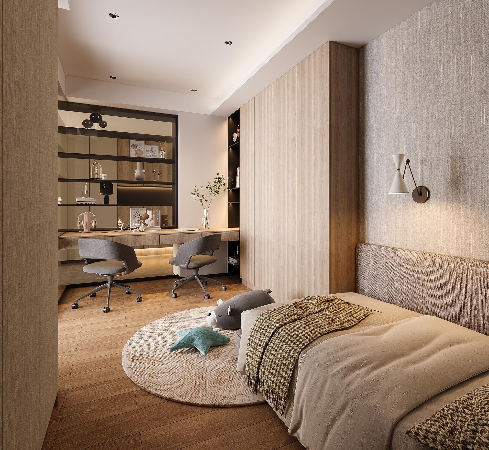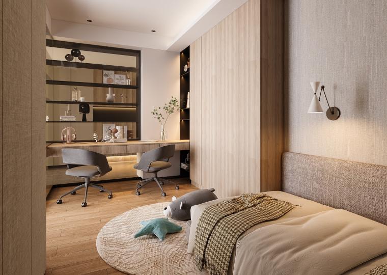 細節處理則以質感材質與精緻軟裝點綴,使空間既溫暖又富有品味,打造兼具舒適與美學的現代居所。