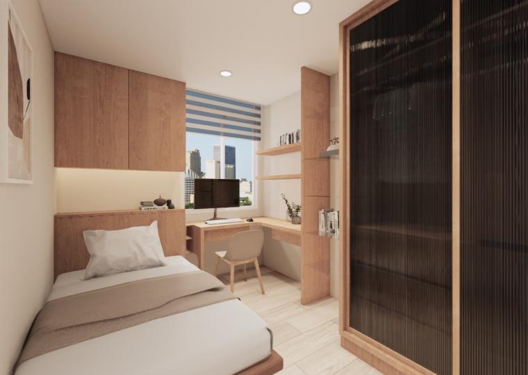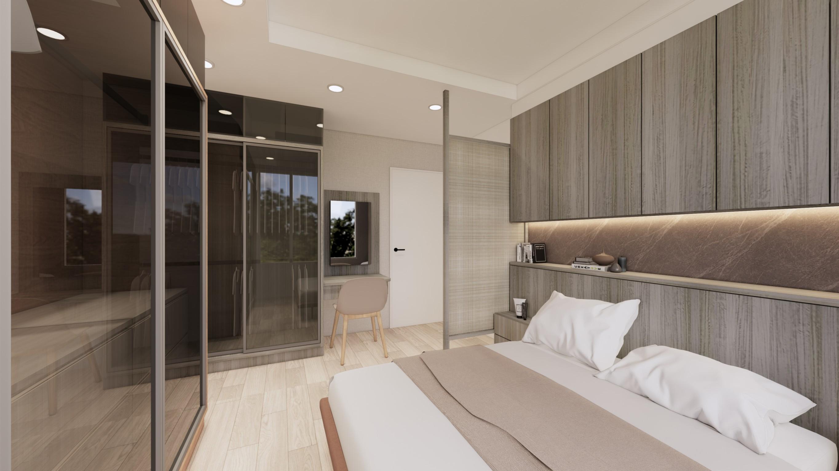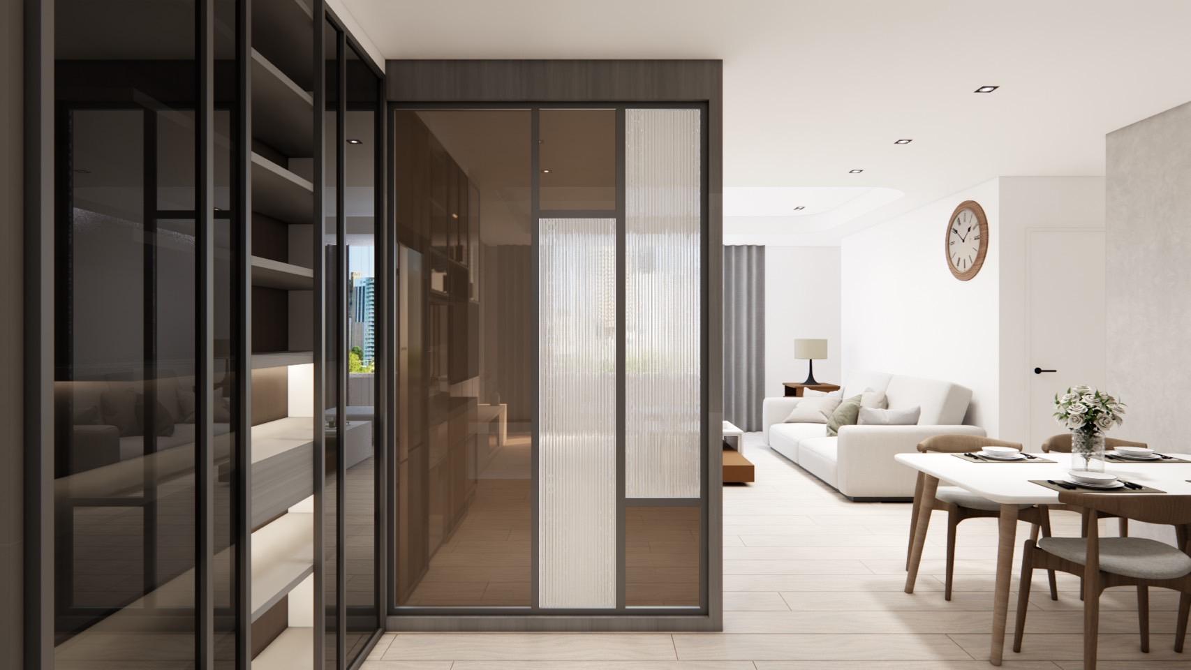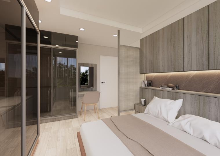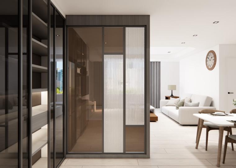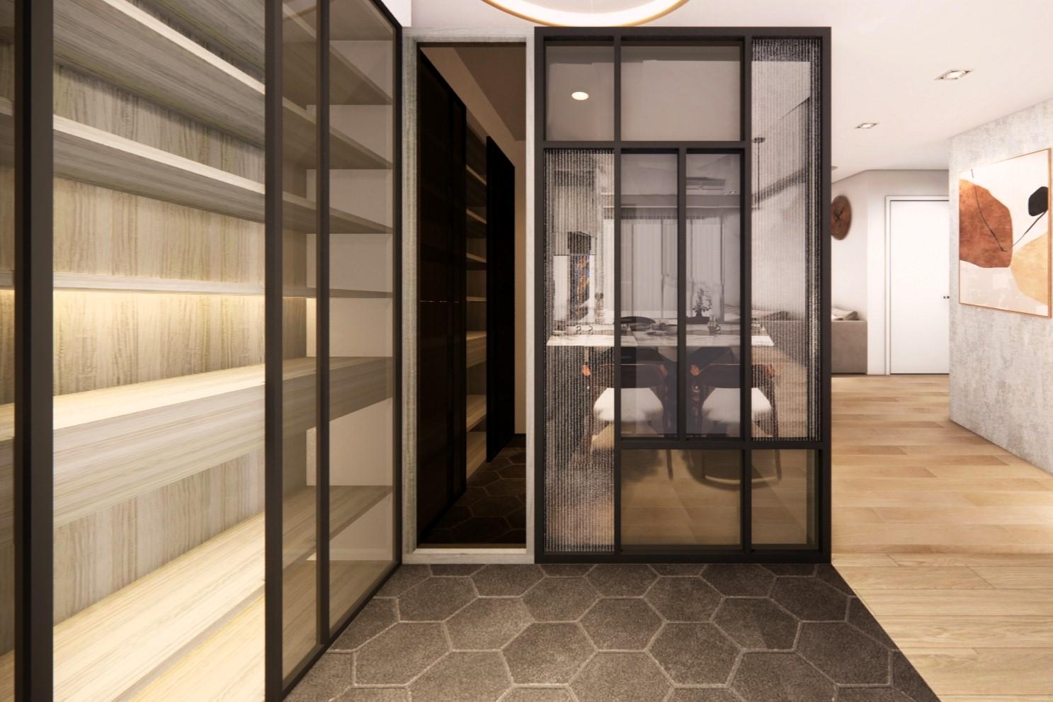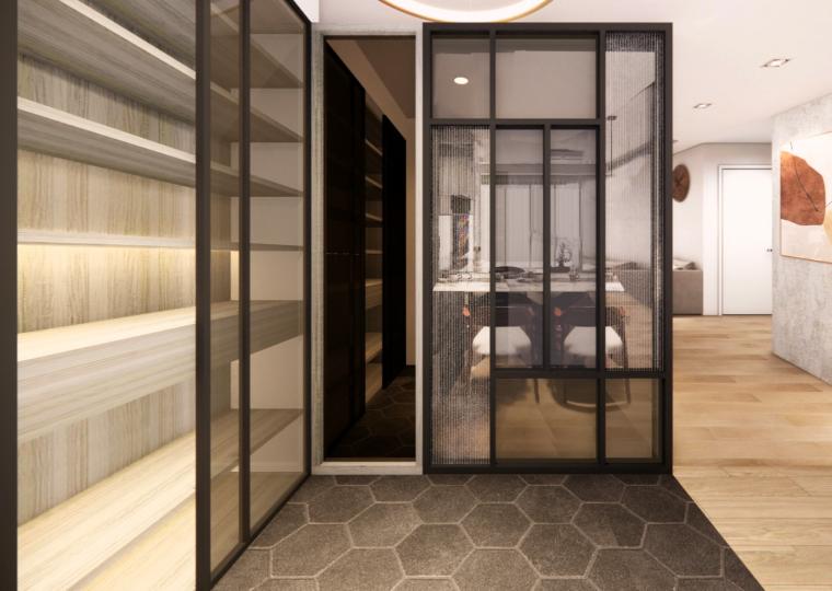 以材質的細膩層次與光影的流動,勾勒出一處既具現代感又蘊含溫度的生活場景。整體風格延續現代簡約語彙,透過木質調、淺色石材與玻璃材質的交織,營造俐落而不失柔和的視覺節奏。